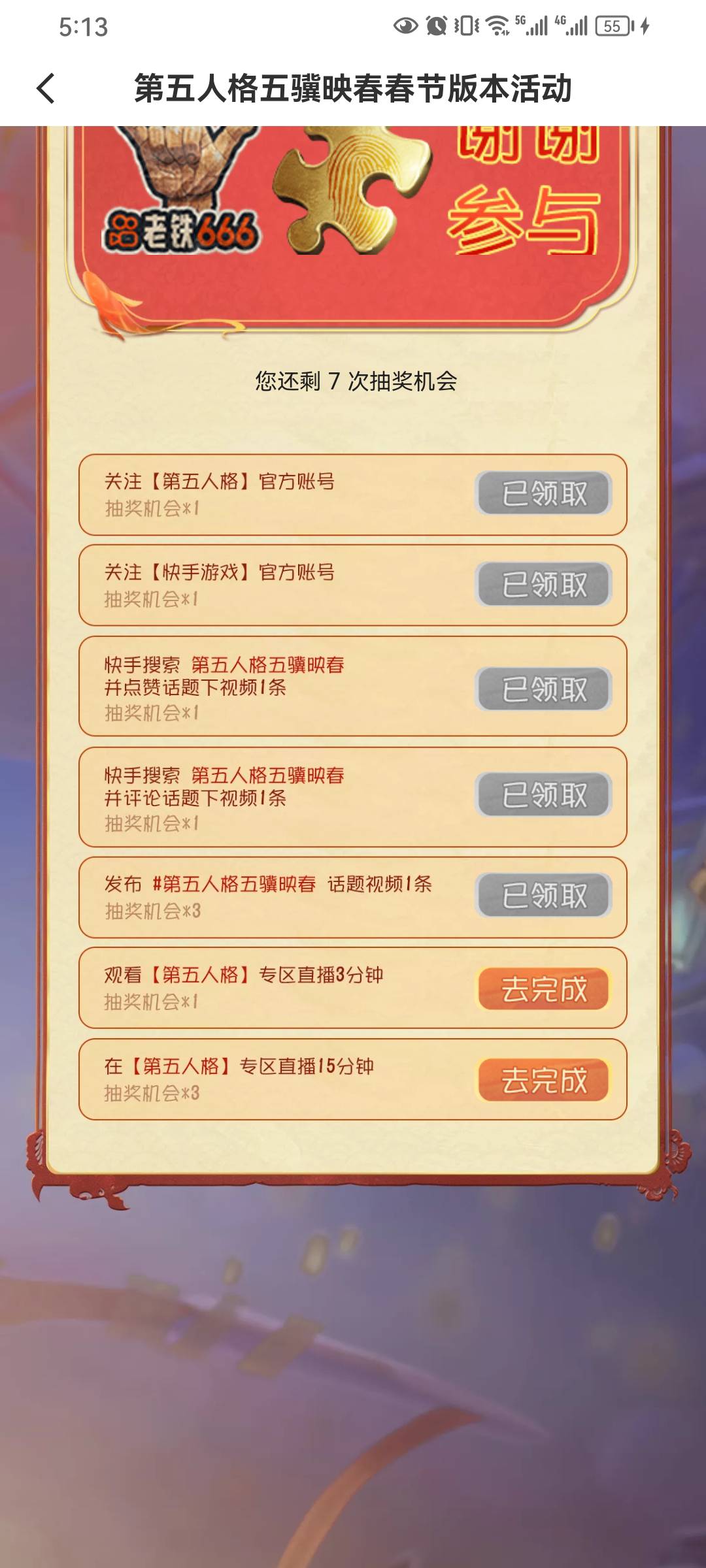 快手第五人格游戏五骥映春春节活动