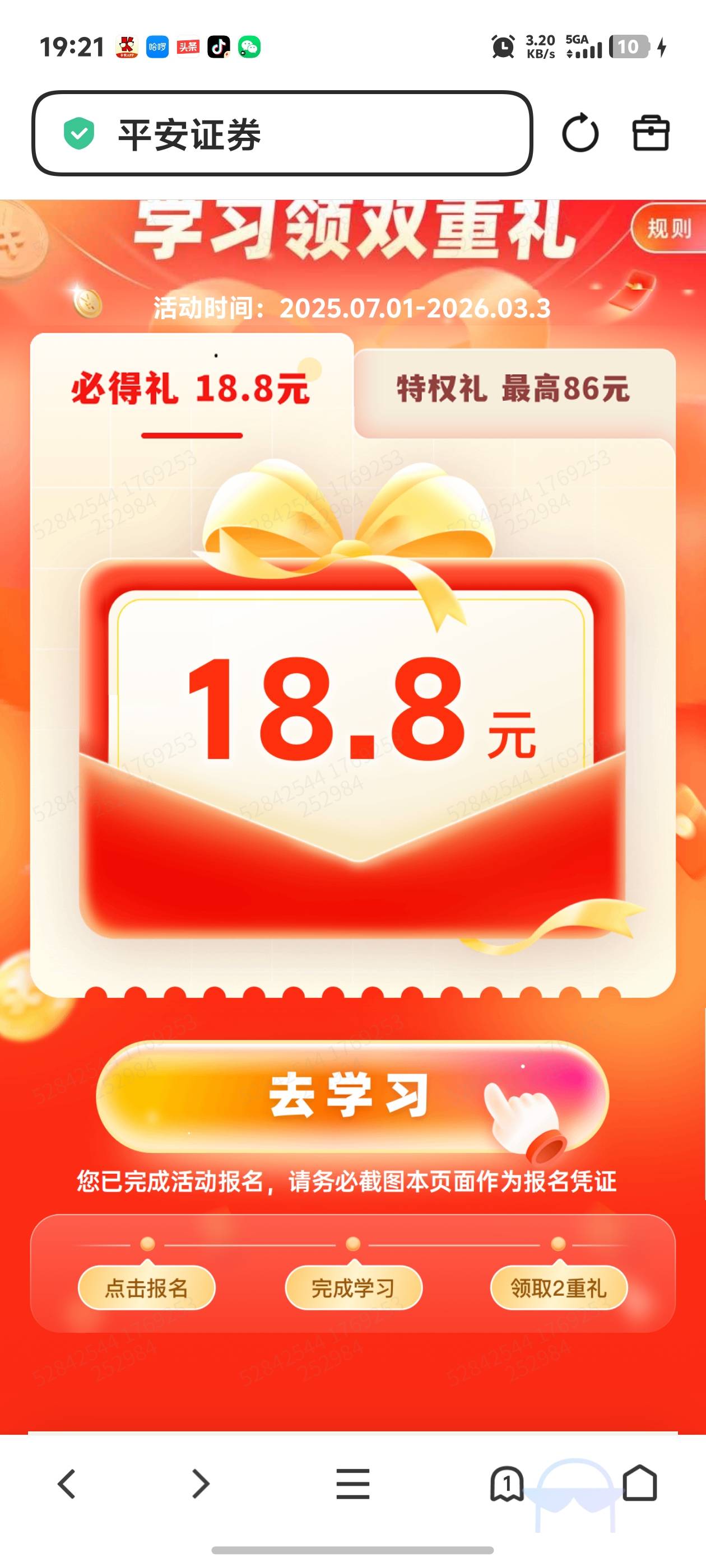 平安证券领双重礼必得礼18.8元活动