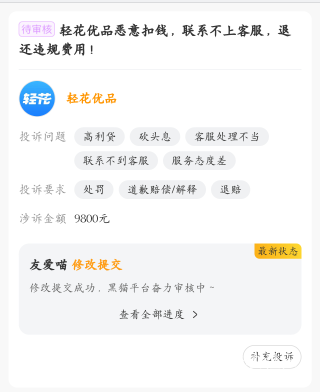 轻花优品,黑猫先投诉一波。平台装死真就恶心。看多久有回复。