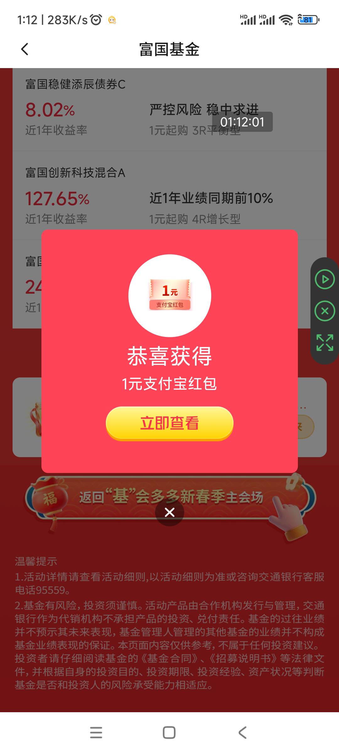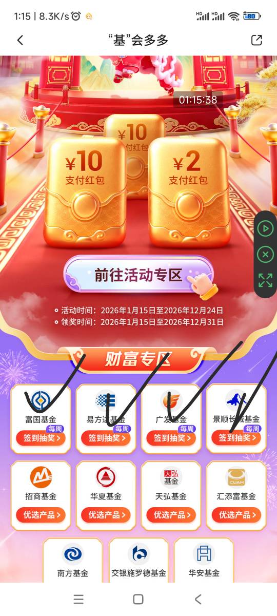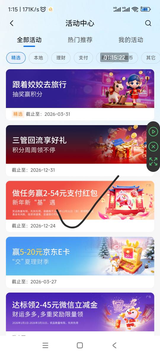 交行→活动中心→基金会多多,这四个抽奖水了