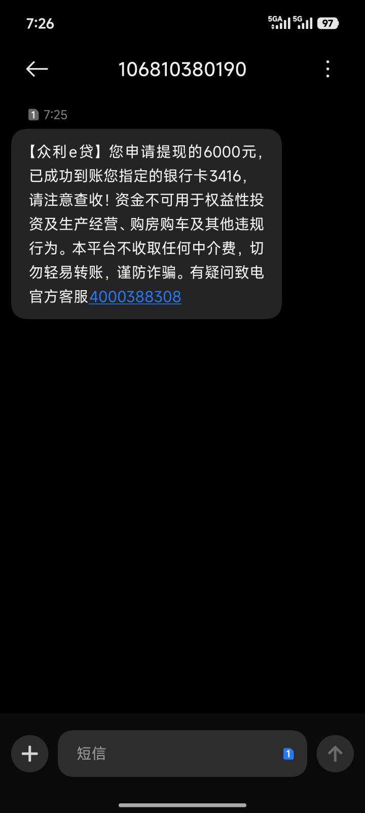 众利分期真有! 本人资质大花,早上看有老哥众利下款了,反正已经花了,试试就试试,