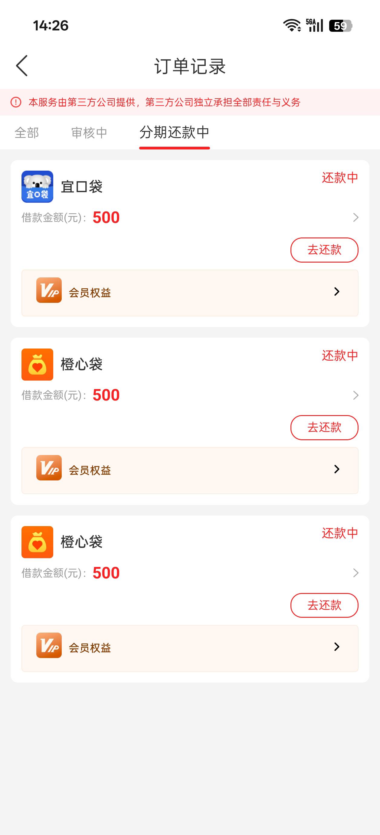 立减金第一期扣了,会员也让扣了。一共扣了两笔56,就为了放长线