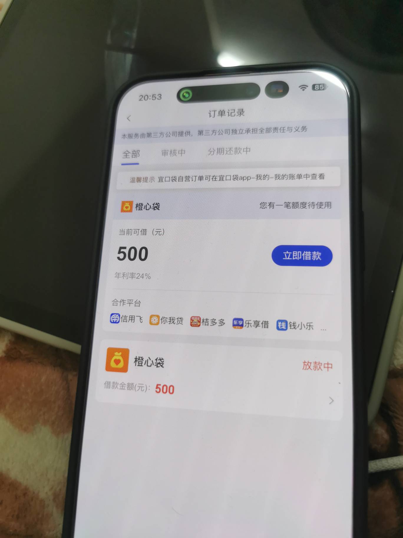 橙心贷,我没有入口,我这个已经下款了