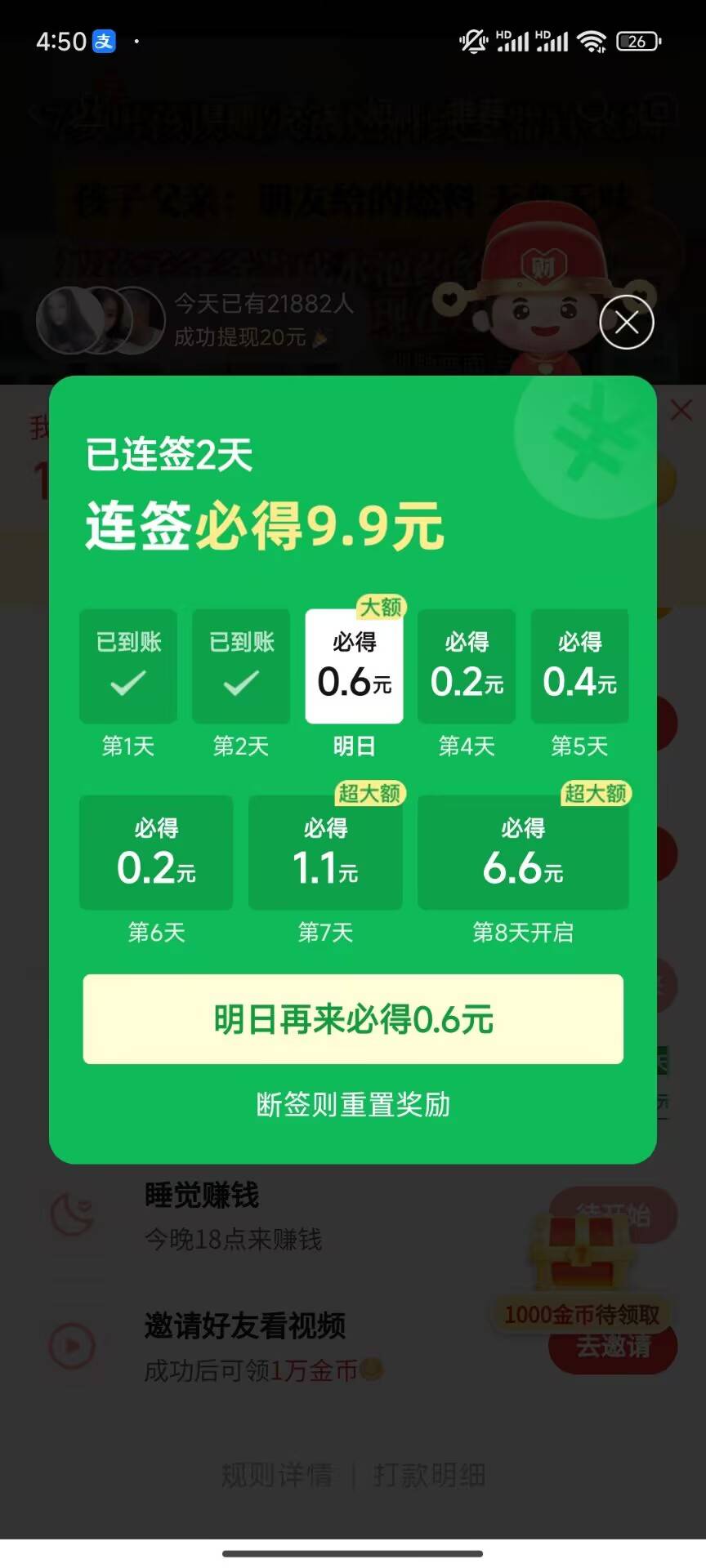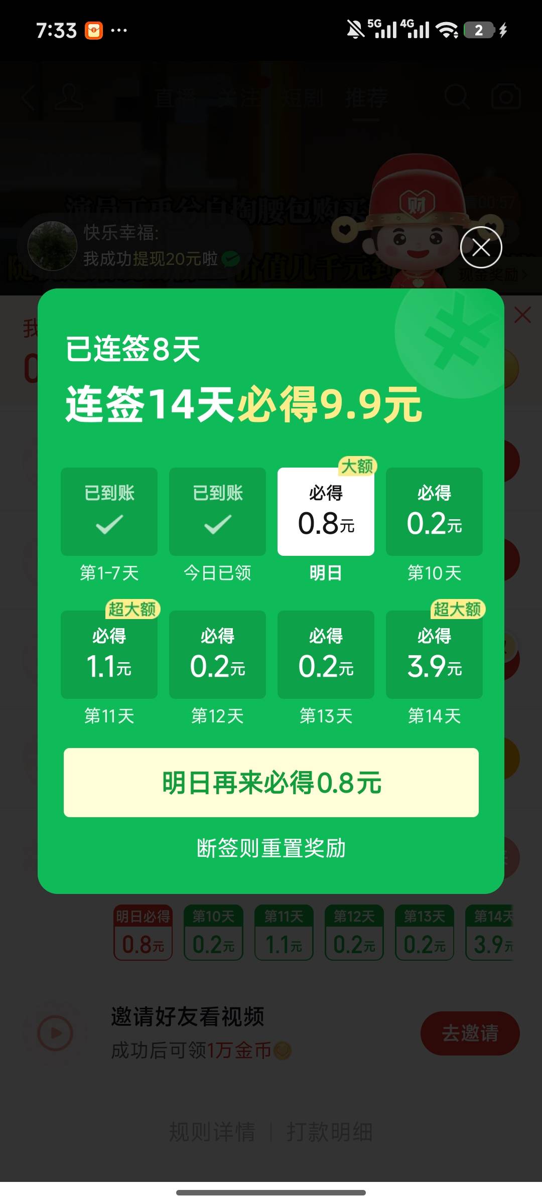 14天9.9,第八天就给你6.6,后面你就不会签到了。前八天就差不多领完了
