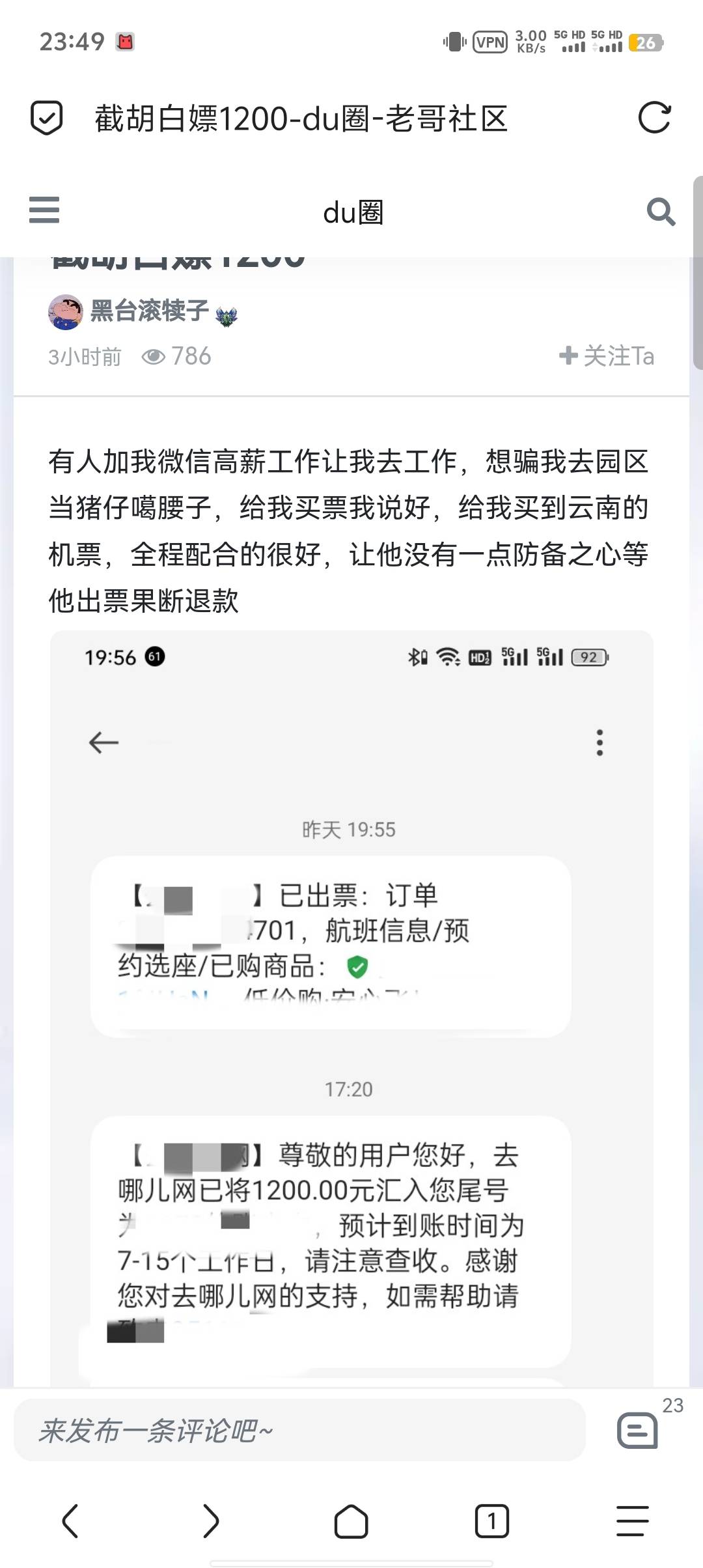 我要撸老哥 发表于 2026-01-28 00:00 我老乡以前骗了别人好几万也是这样
