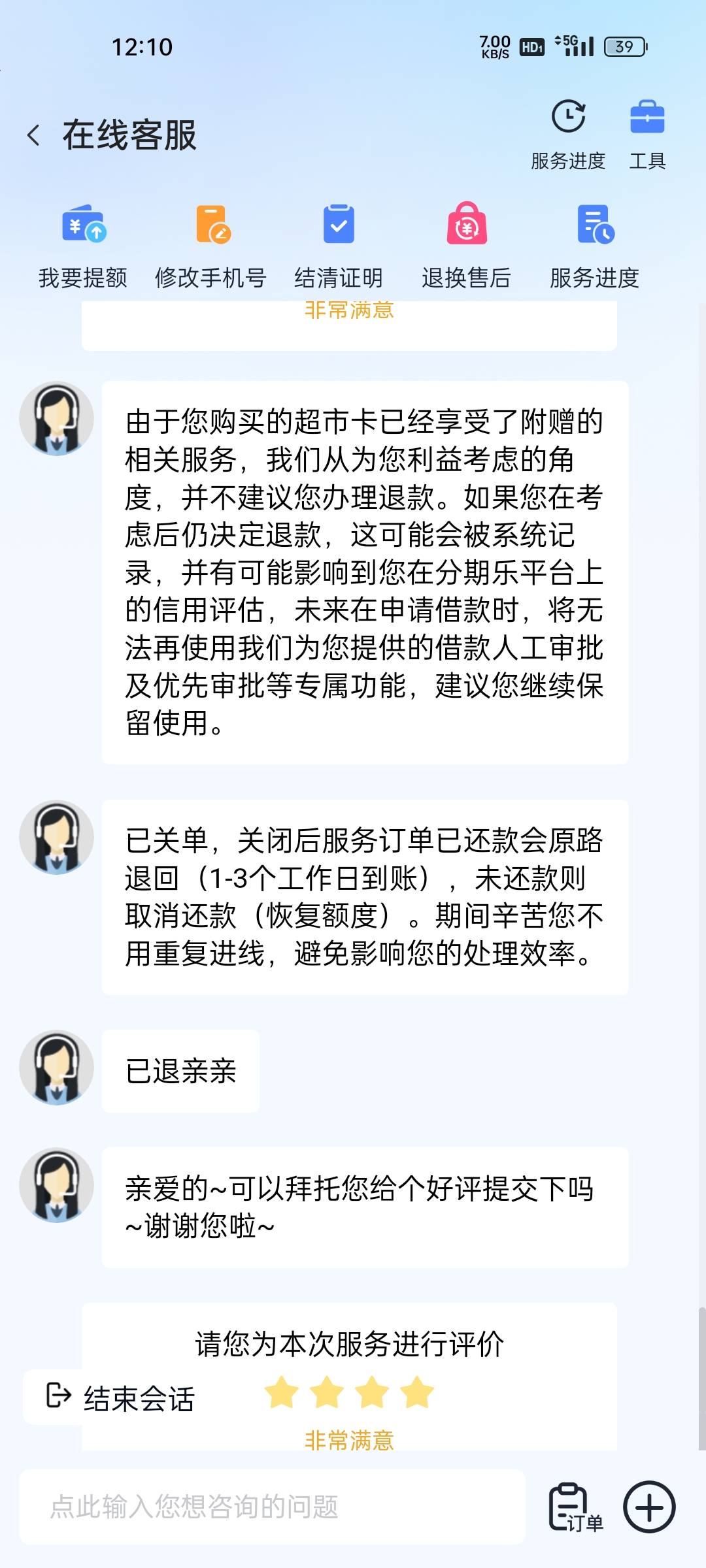 接上帖 分期乐又下款1380 两个500超市卡找客服秒退 老老哥们说不好退就没借款了 早知