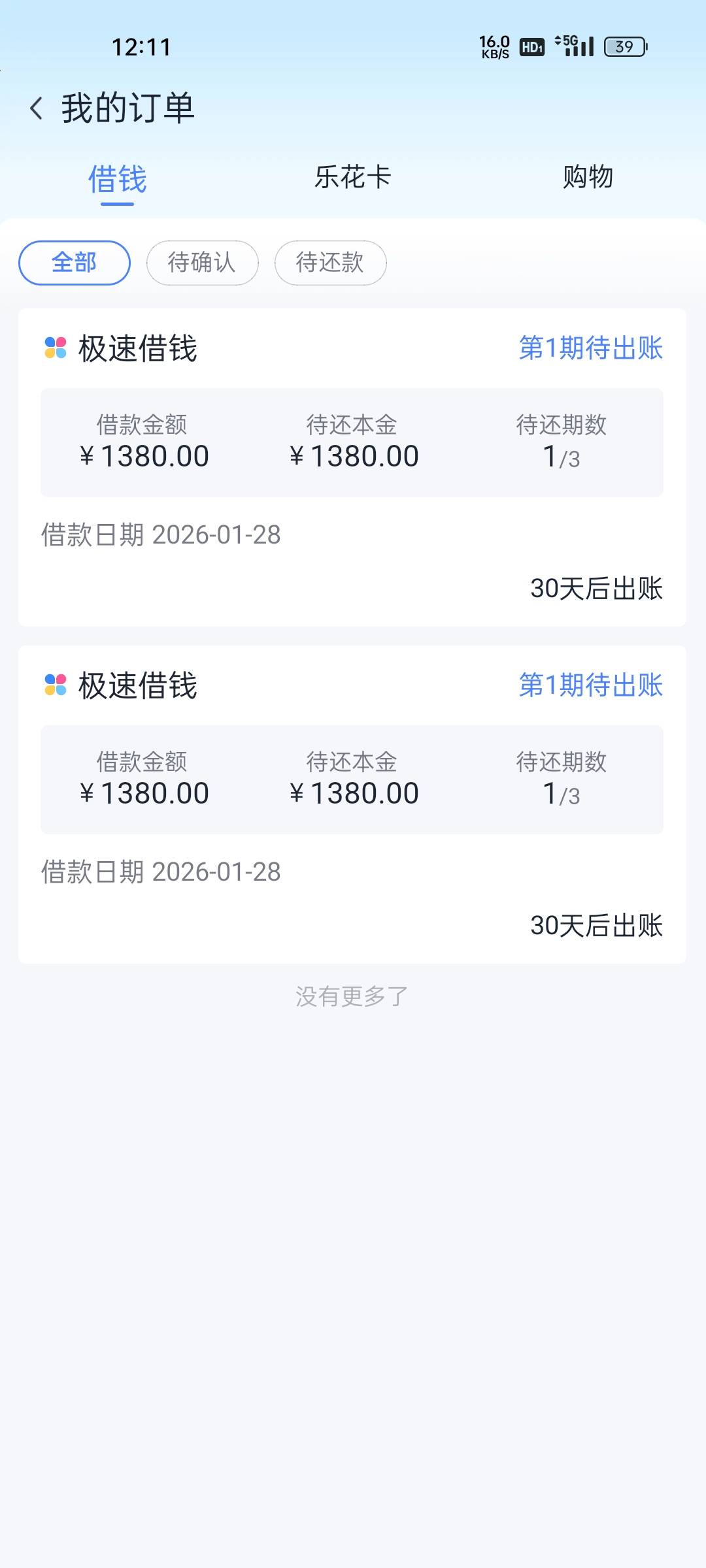 接上帖 分期乐又下款1380 两个500超市卡找客服秒退 老老哥们说不好退就没借款了 早知道该再借一笔1380的