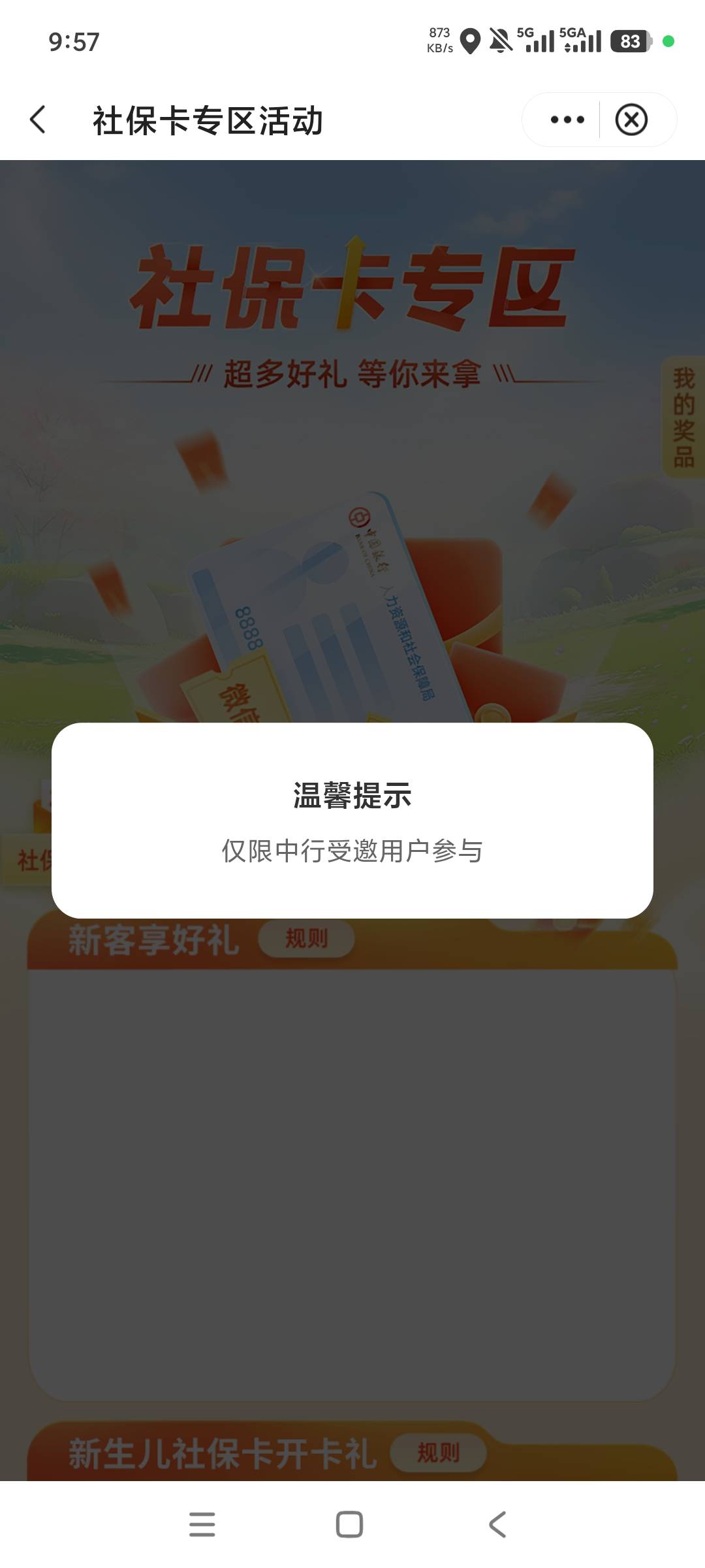 老哥们,宁波中行社保卡我已经激活了,中行也飞了宁波,怎么这个社保卡专区进不去成特邀了?我还有社保卡奖励没领
