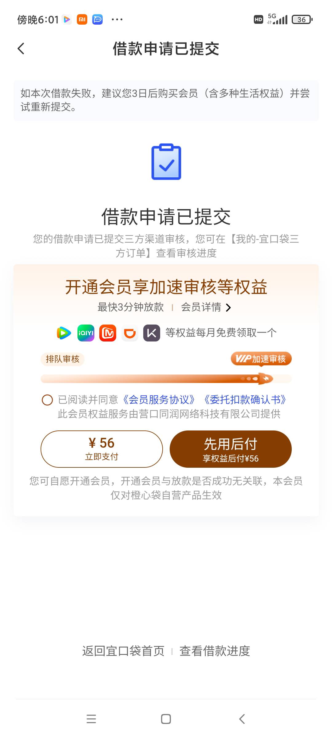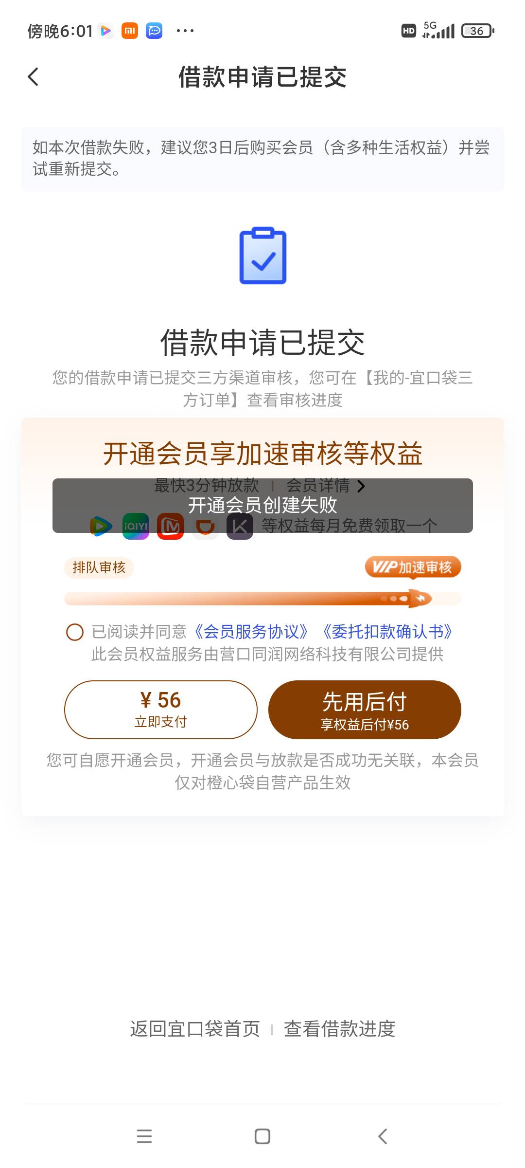 前两天下了一笔500.扣了56。现在创建会员失败。如果我直接支付56能下吗。有没有人尝试