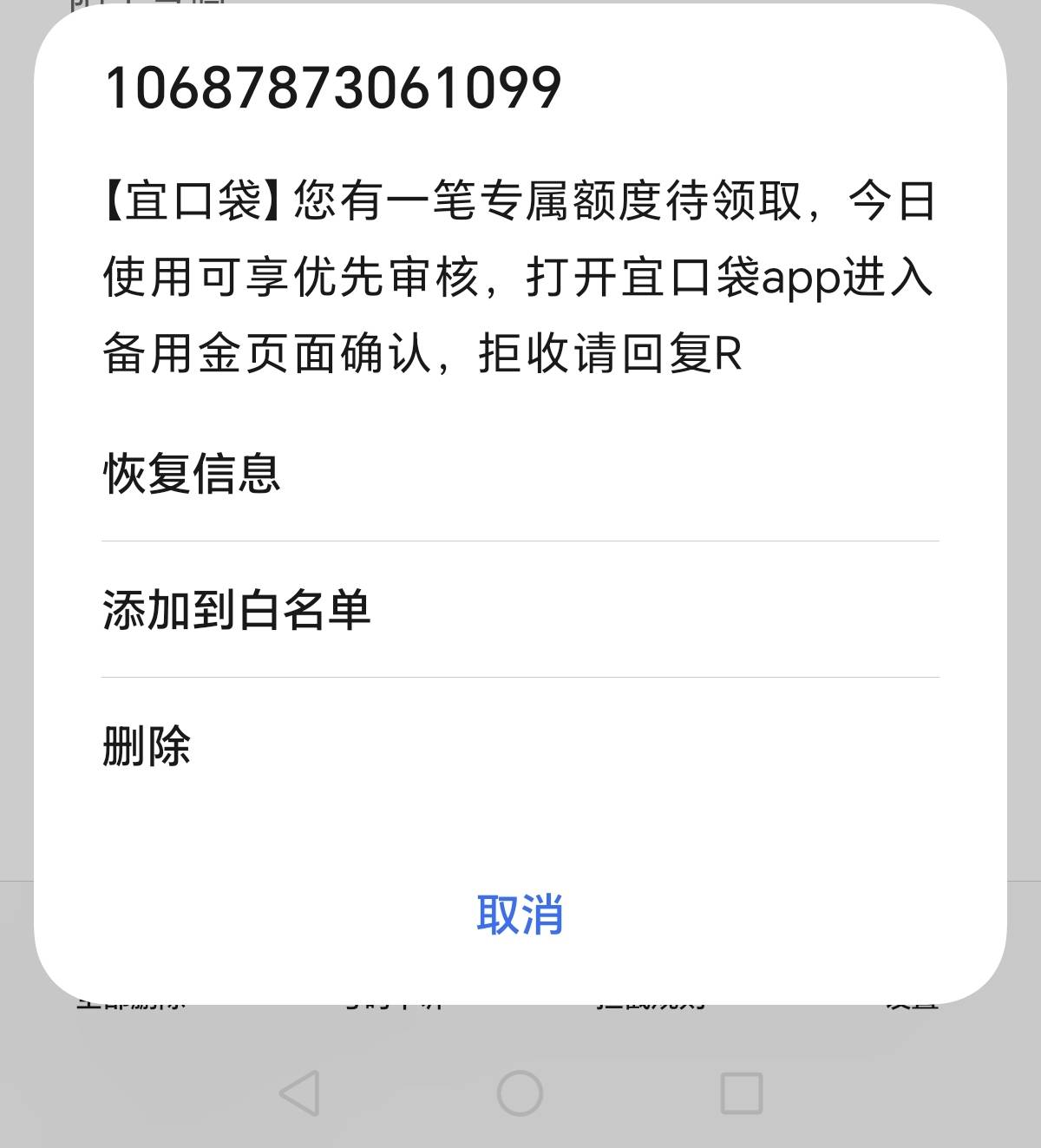 这宜口袋,自从下了一笔500,隔三差五就发这种短信,完了上去就秒拒