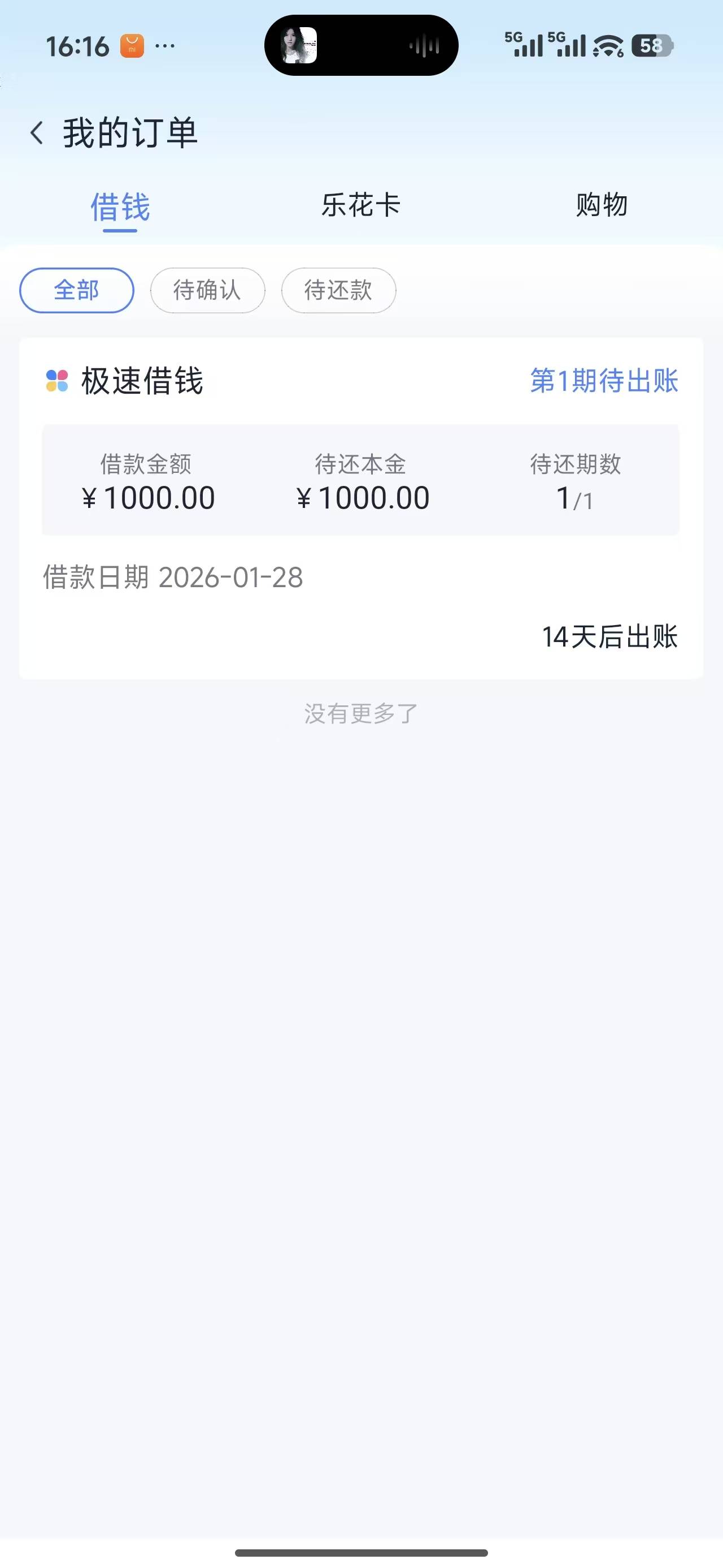 分期乐借款1000到账了,只给我分一期还只能借一次。要买500超市卡,放款到账联系客服退就好了。
