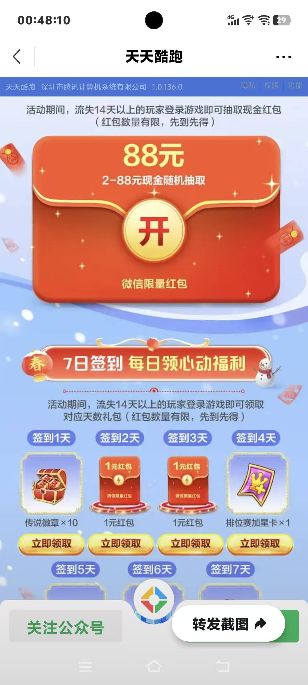 腾讯游戏天天酷跑1月30号游戏链接活动