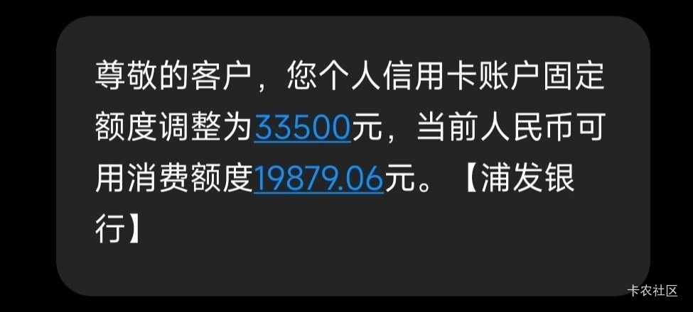 浦发时隔七个多月终于提升额度了,额度提升到33500了。