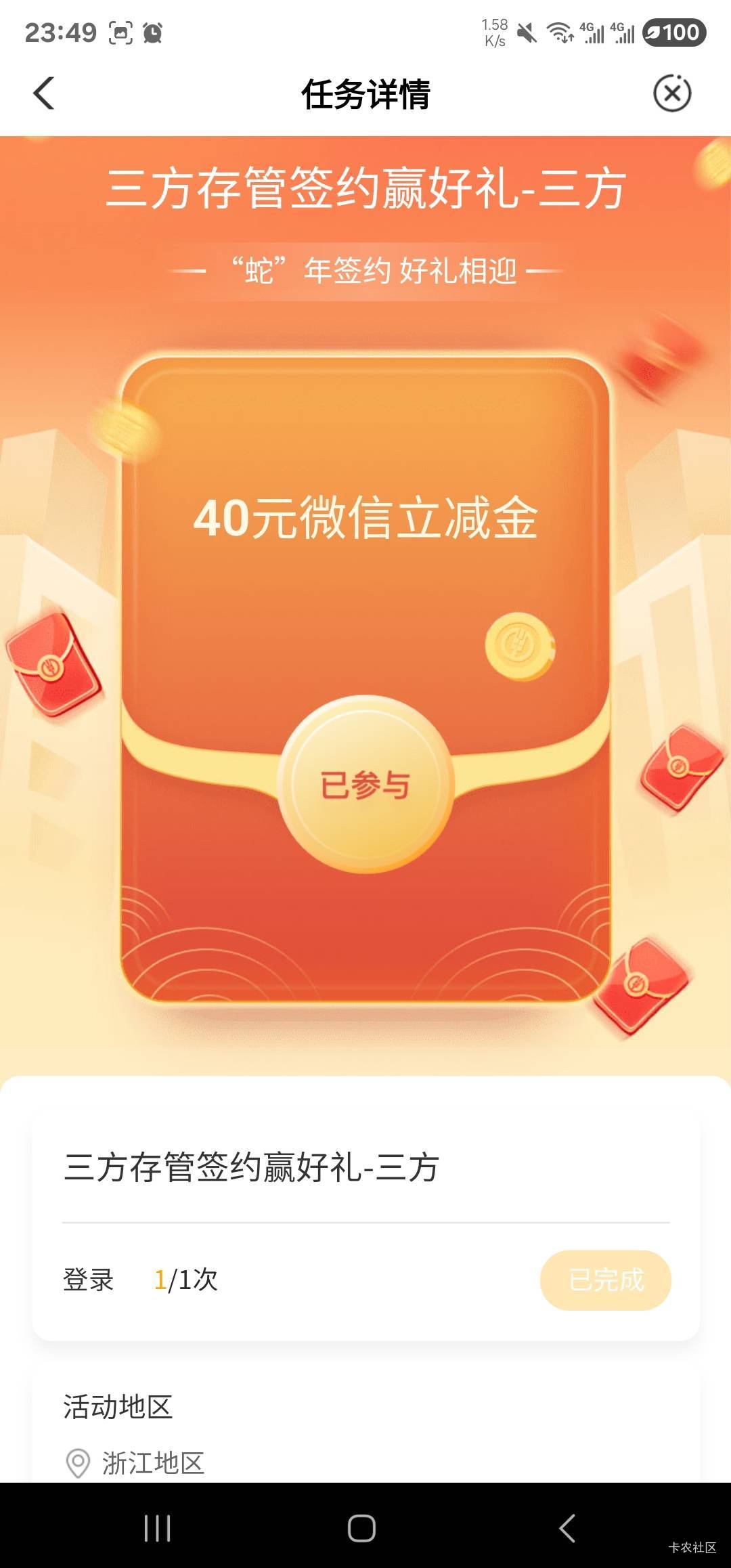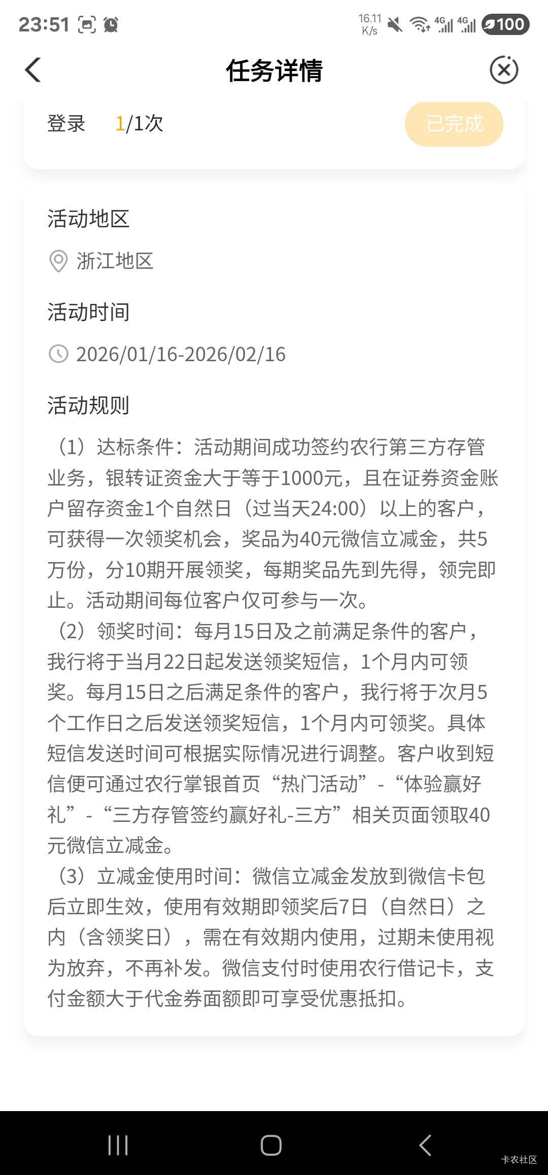农行三方存管任务中心黑的可以联系分行网点反馈,我补了40E卡,拿这个图,规则写的是领取不是抽奖形式,以这个点切入