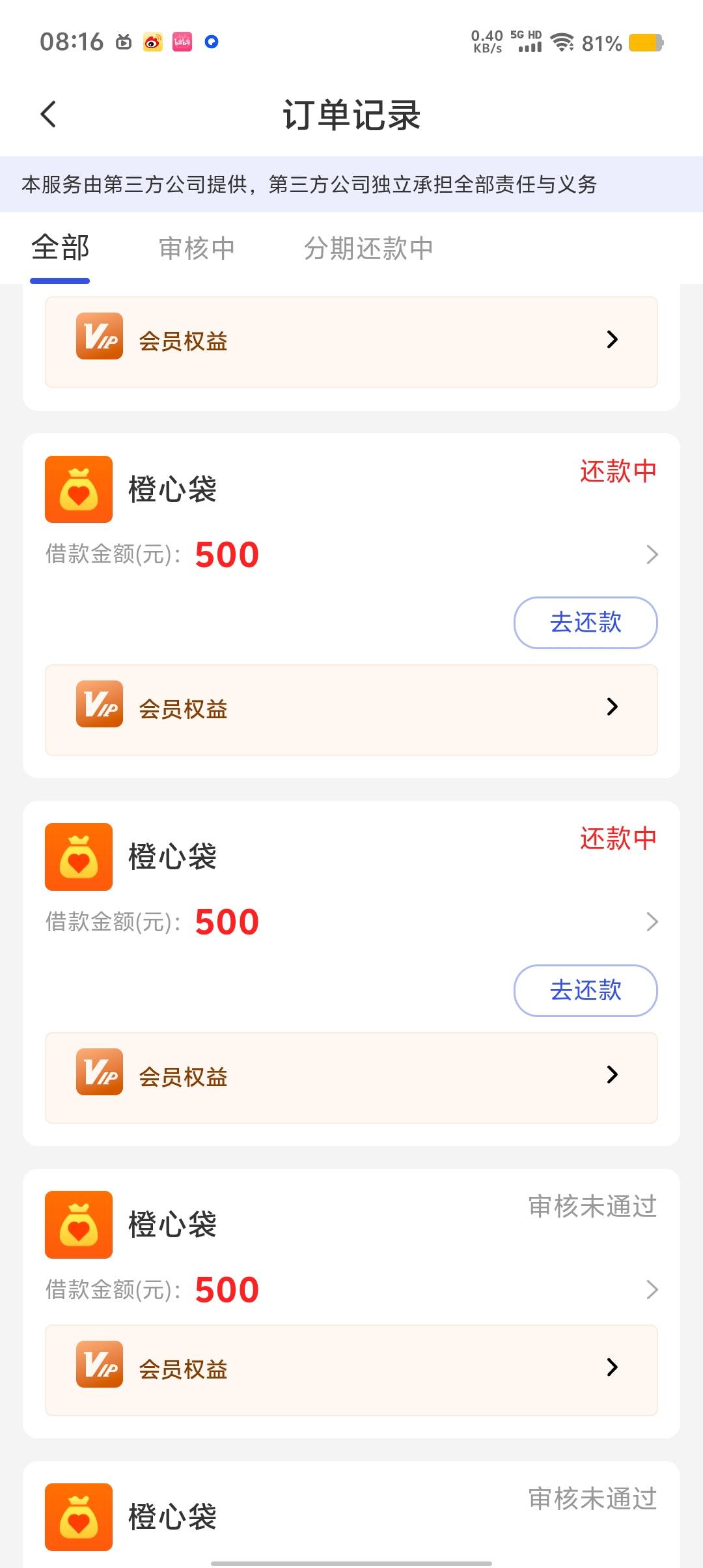 宜口袋前两天还款日下了两个500,昨天又申请了个2800,今天早上出了会员点了希望能快点下款。