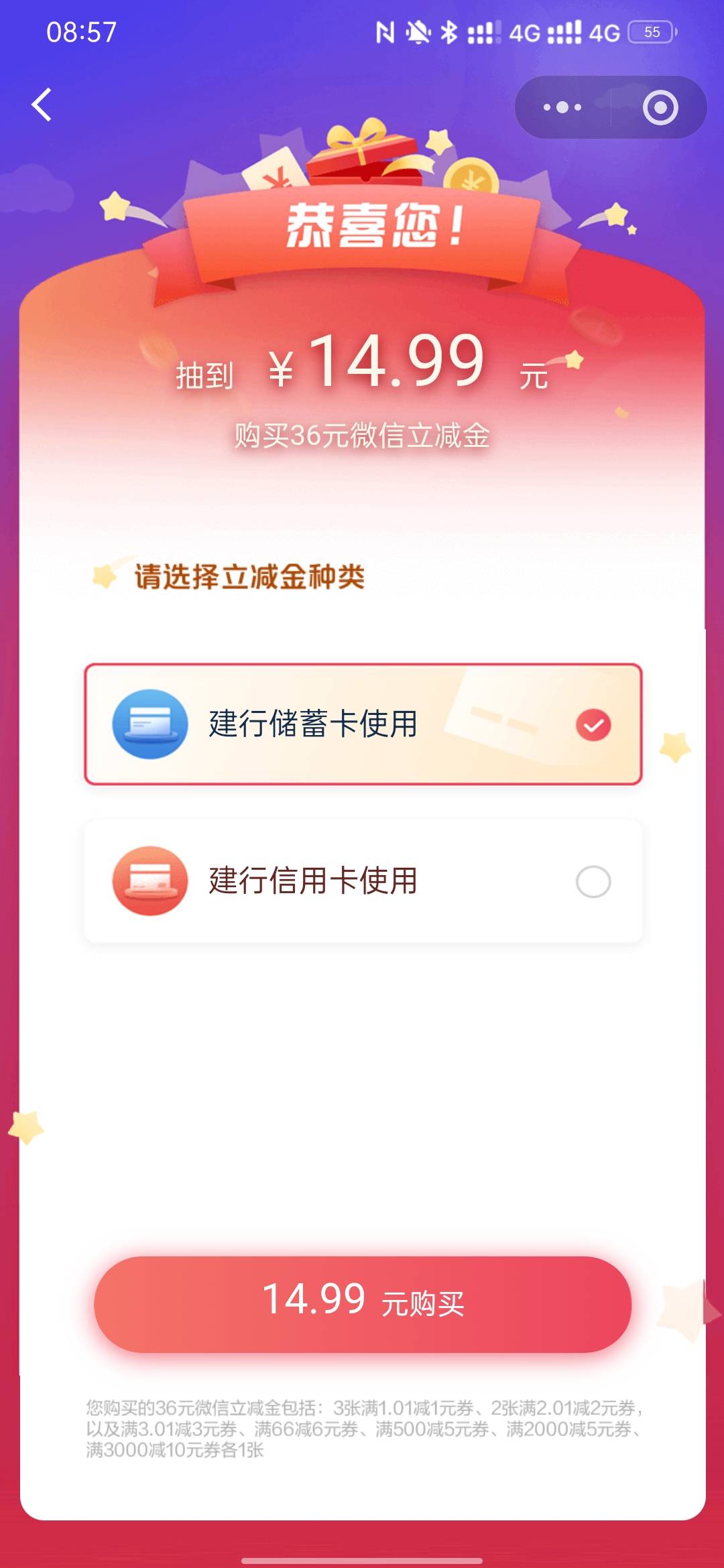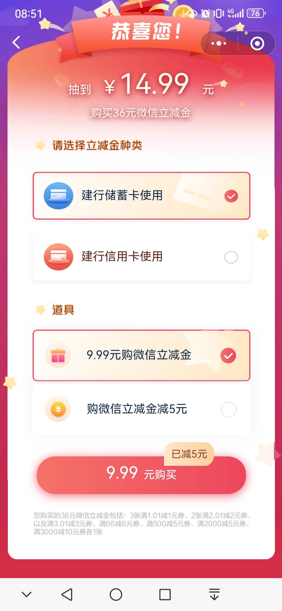 建行惠省钱超值36元立减金活动