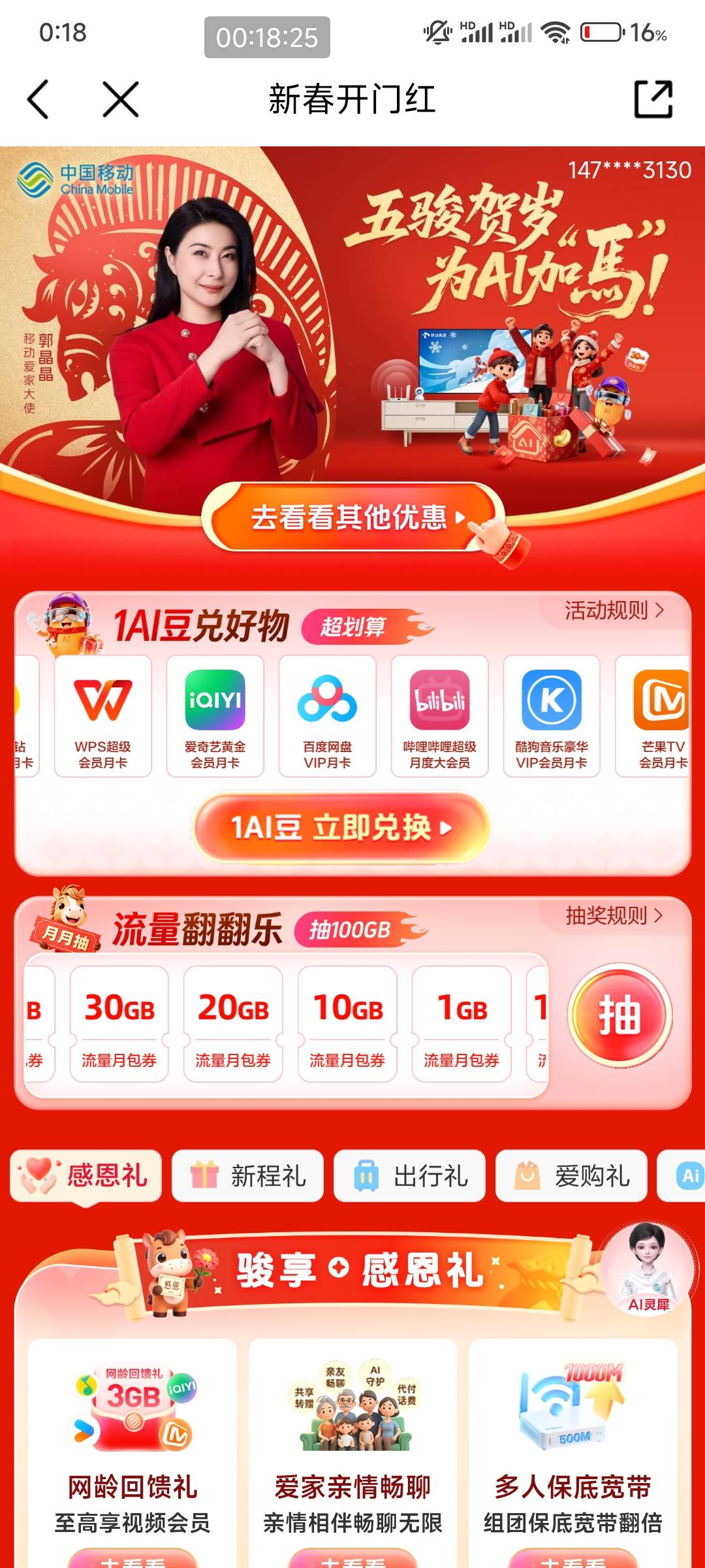 中国移动新春开门红流量翻翻乐抽奖活动