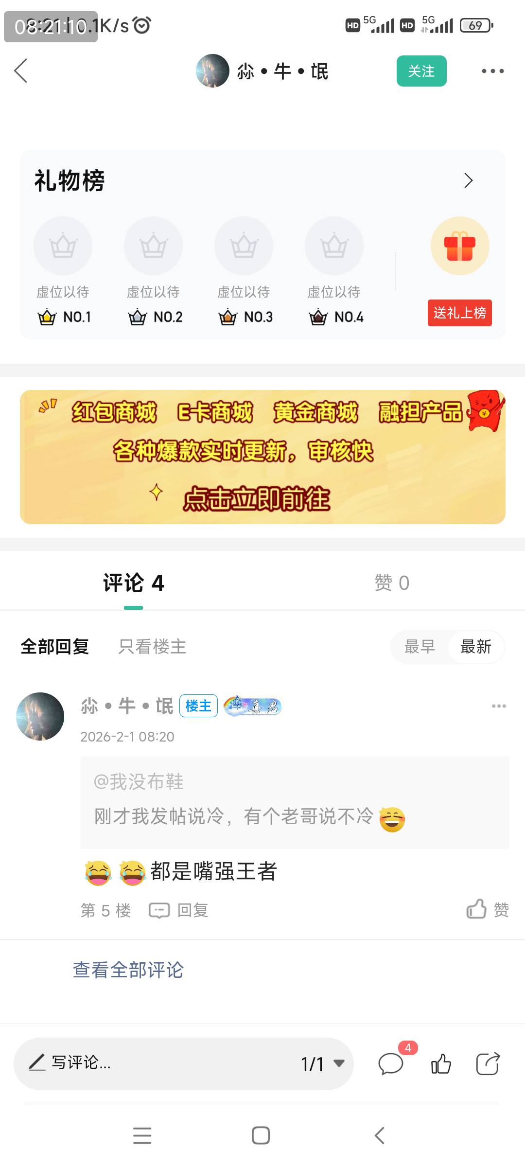 初心ic 发表于 2026-02-01 07:50 真老哥现在瘫痪公园,假老哥才有钱买菜