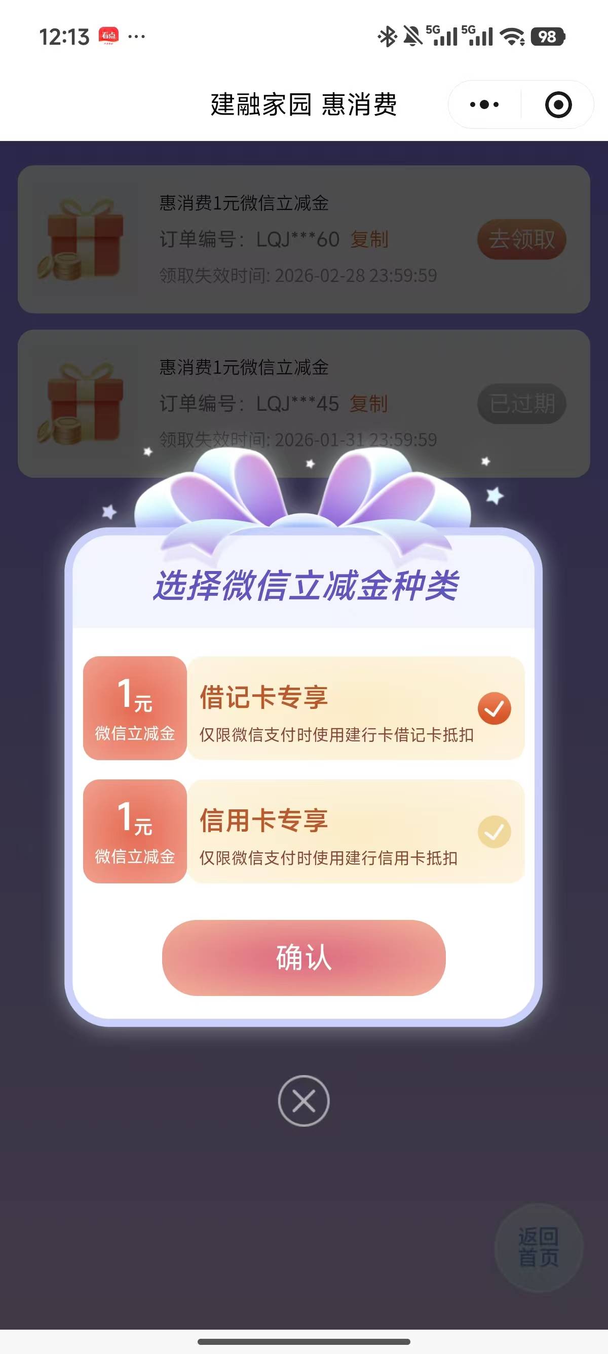 建行二月羊毛 上个月领取过的冲