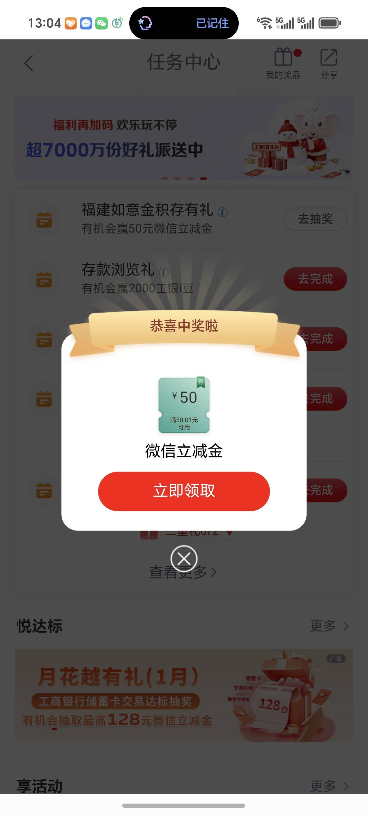 工行任务中心福建如意金积存有礼活动