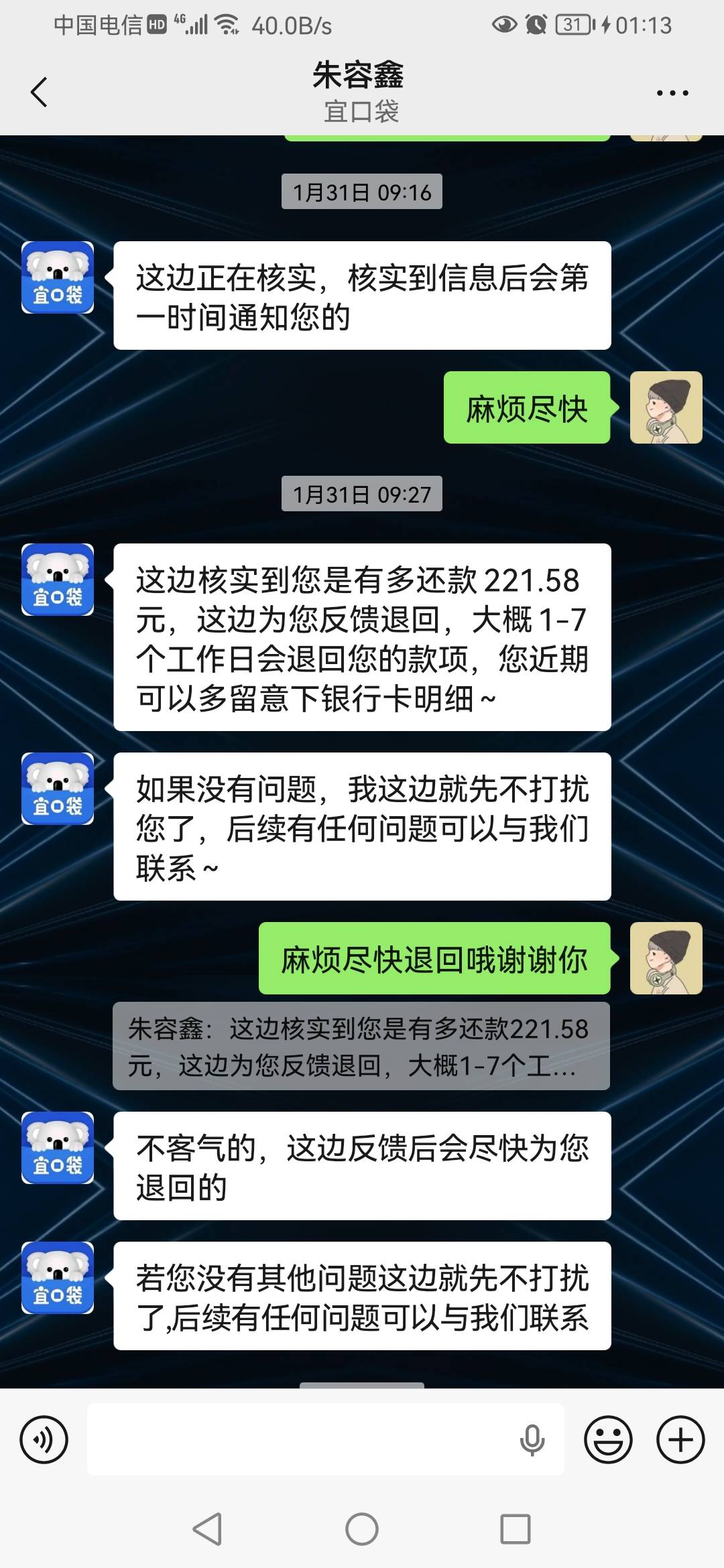 宜口袋31日下款500橙心贷,然后多扣了我一笔逾期的立减金,说1-7天退回现在还没退回,