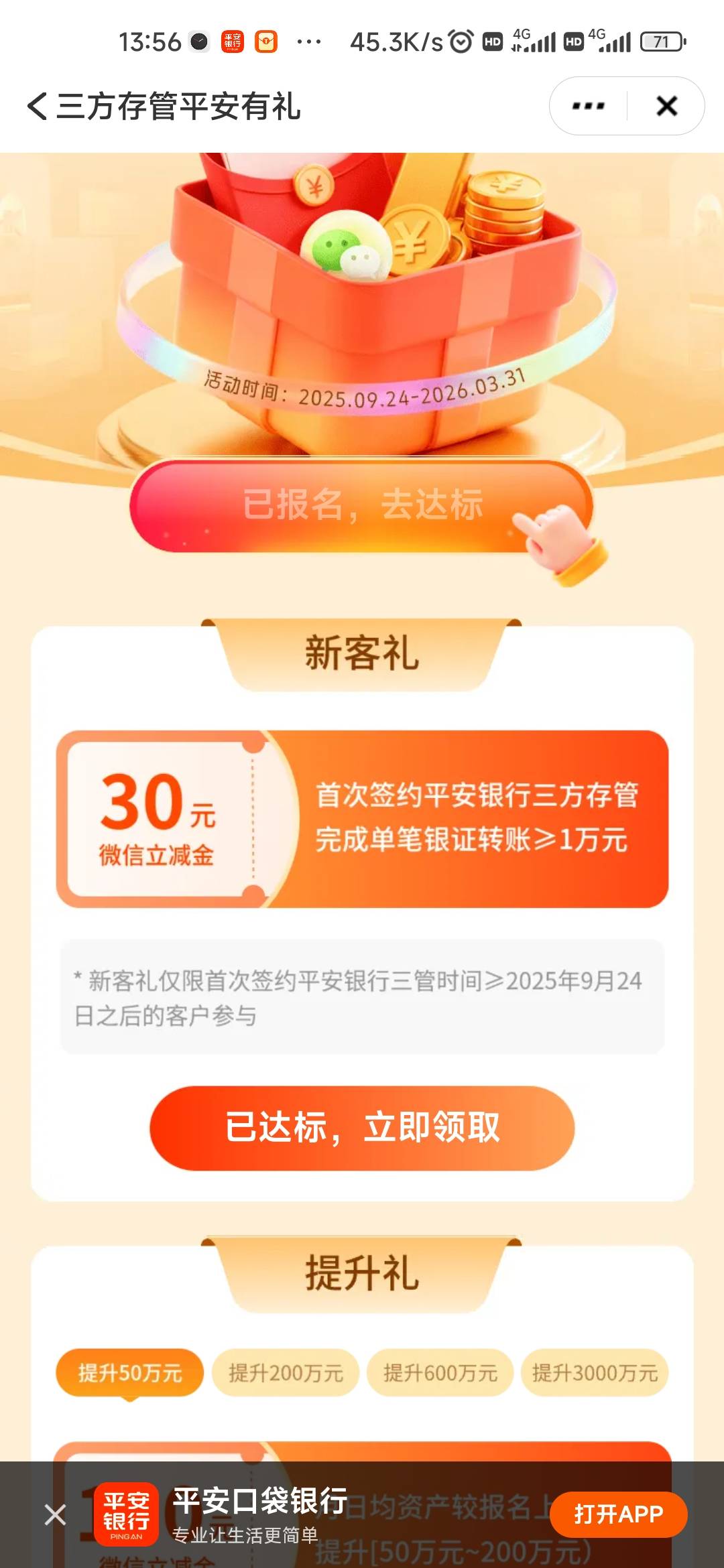 平安刚开户加银证转账,可惜没有那个新客 18.8 了
