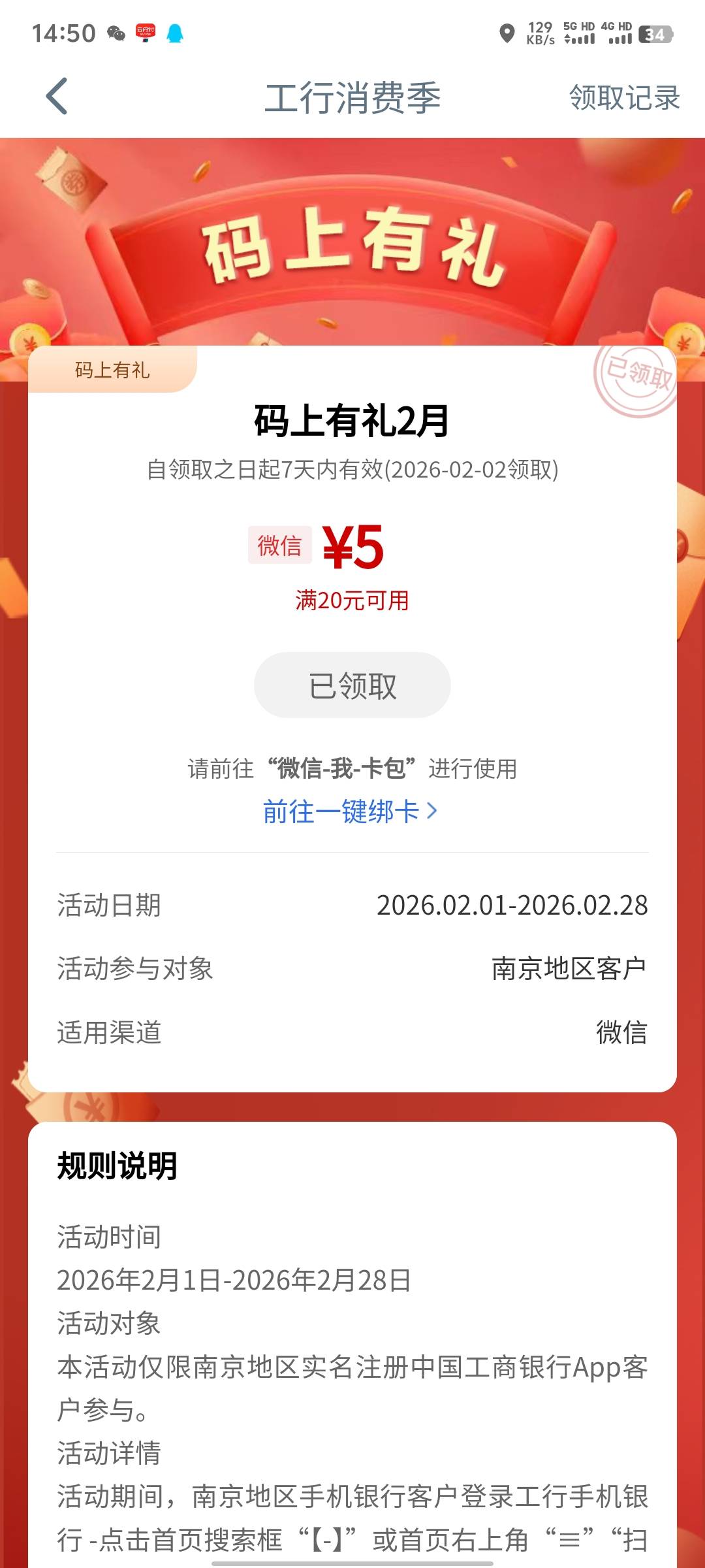 工行江苏码上有礼,这个不限卡,扫码取号这个限制江苏实体卡