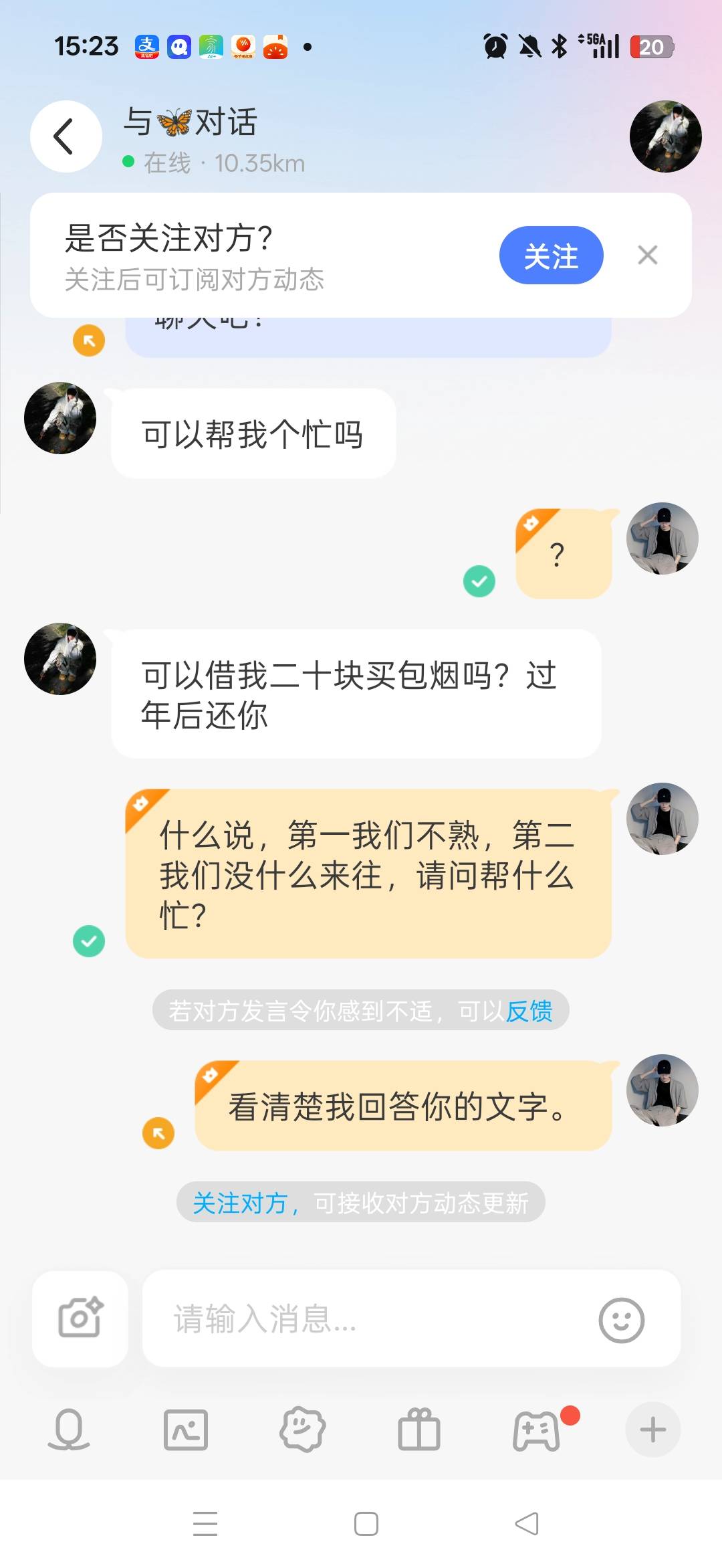 请问陌陌上是哪个有才的老哥问我借钱?