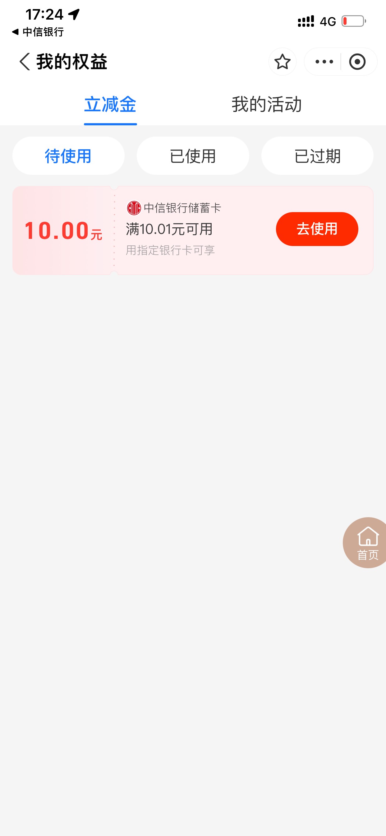 中信存0.1可以领取了