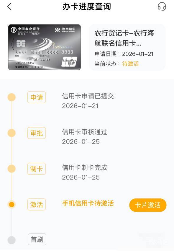 农行航司白现在是不是刚性880了首年,【中国农业银行】您申请的农行贷记卡-农行海航联名信用卡(银联高端白金卡)已通过审批,尾号,信用额度为90000.00元。戳立即激活,激活后绑定微信、支付宝即可消费,实体卡将邮寄至您在我行预留的邮寄地址。