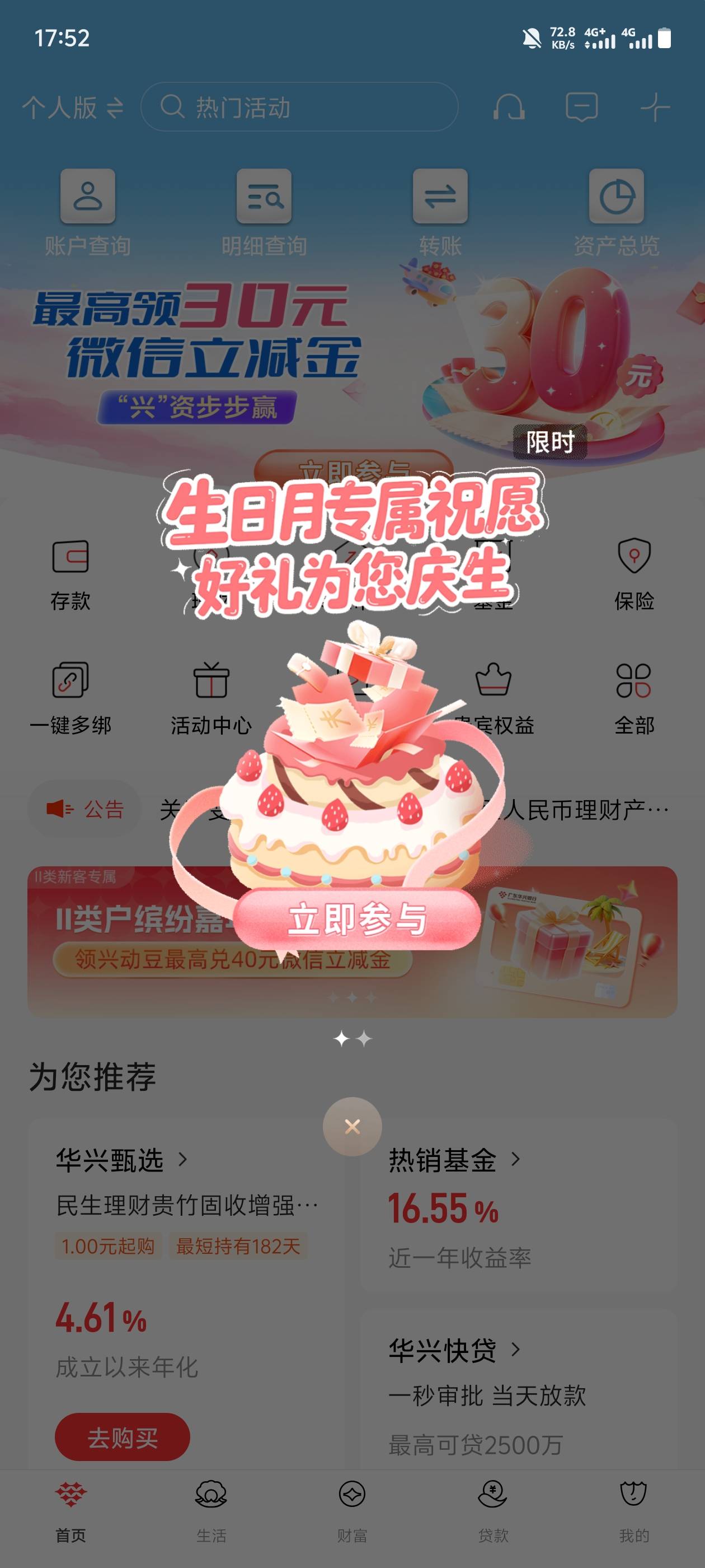 广东华兴银行特邀客户生日月专享礼活动