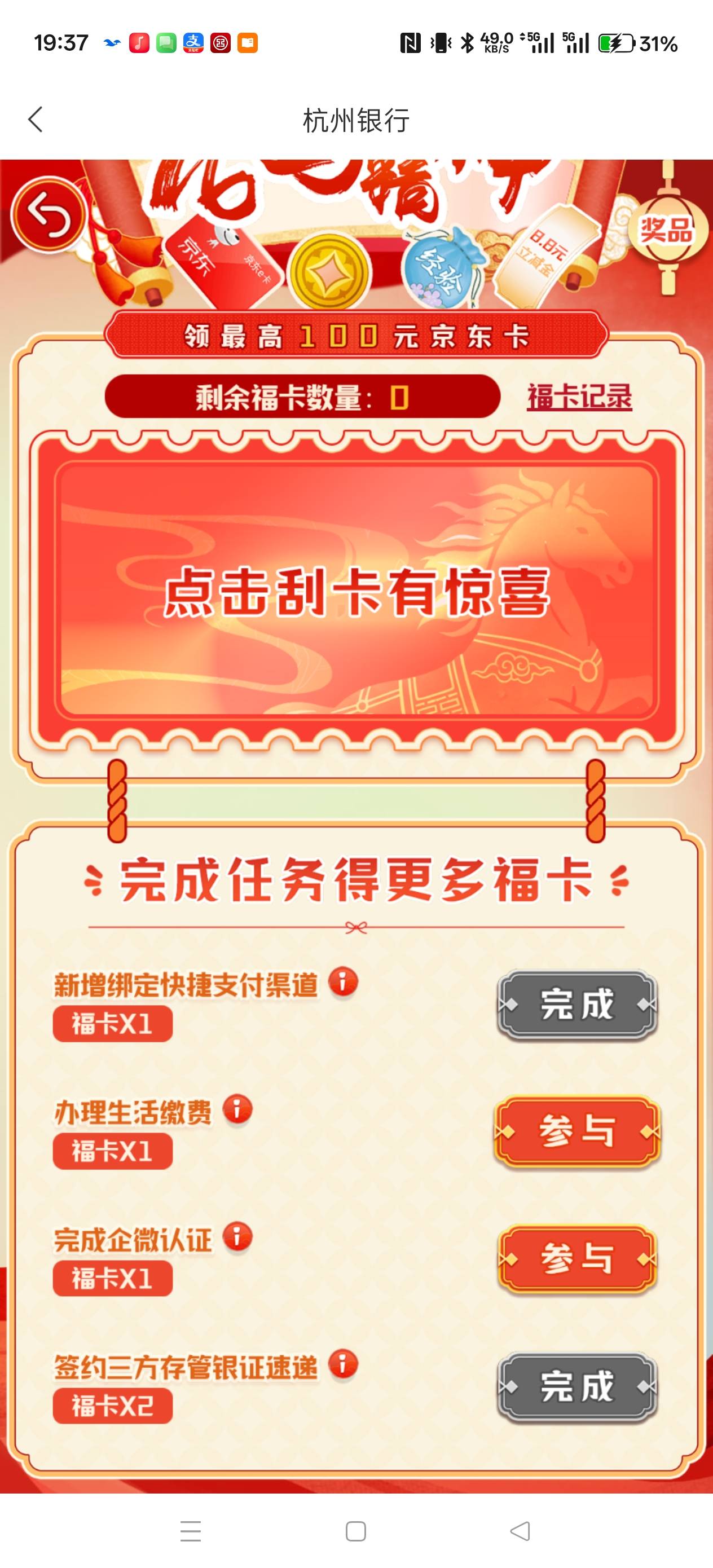 杭州银行杭银财富节龙马精神刮刮卡活动