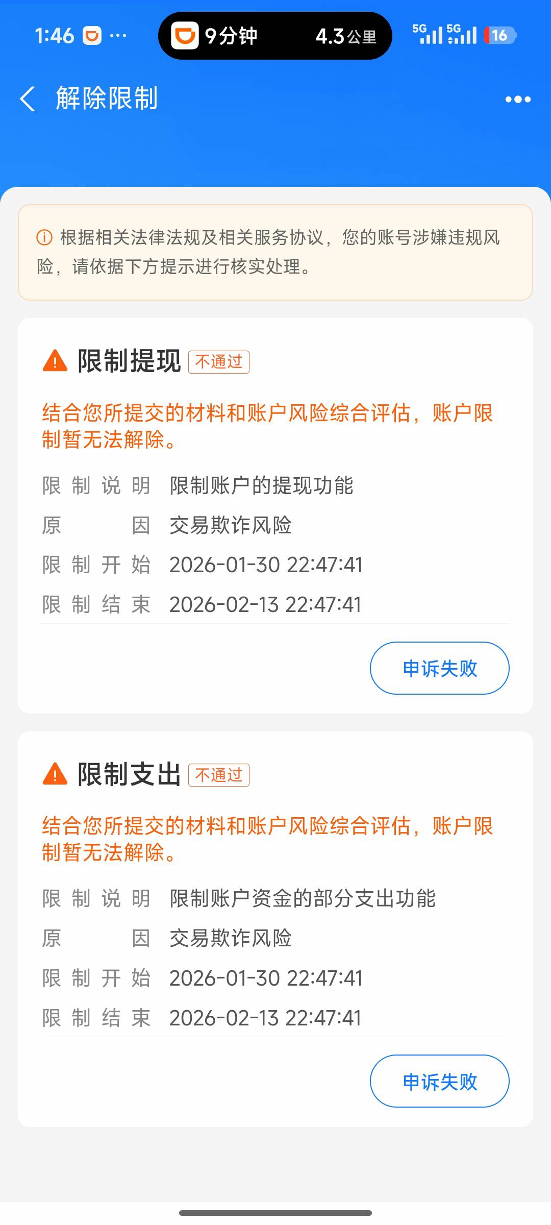 我的没让冻结 就是不能提现……