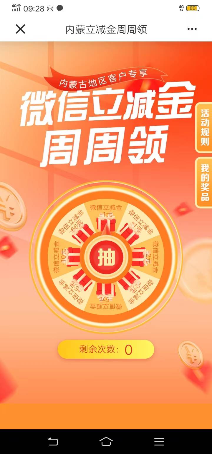 建行e号特每星期都可以领一次立减金,中2