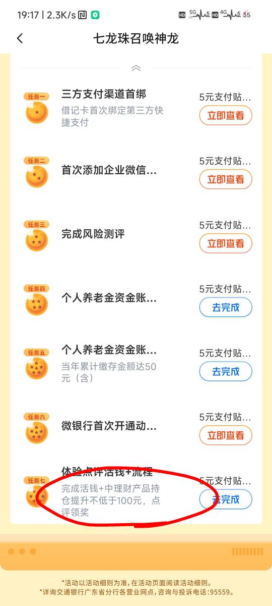 交通这任务点去完成买了100的现金理财今天确认份额了也没完成