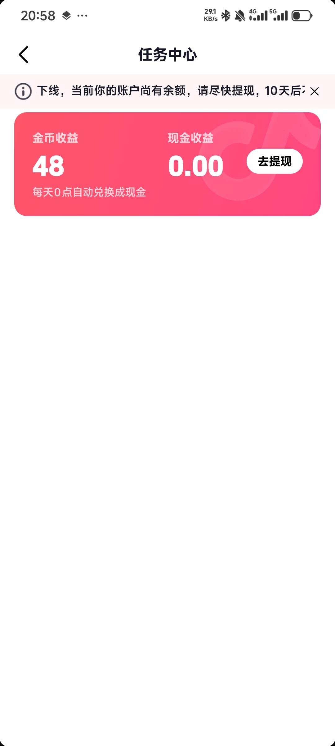 抖音这个有余额之前不够15块的,然后今天上去看了下,居然直接全提了,说任务下线,不