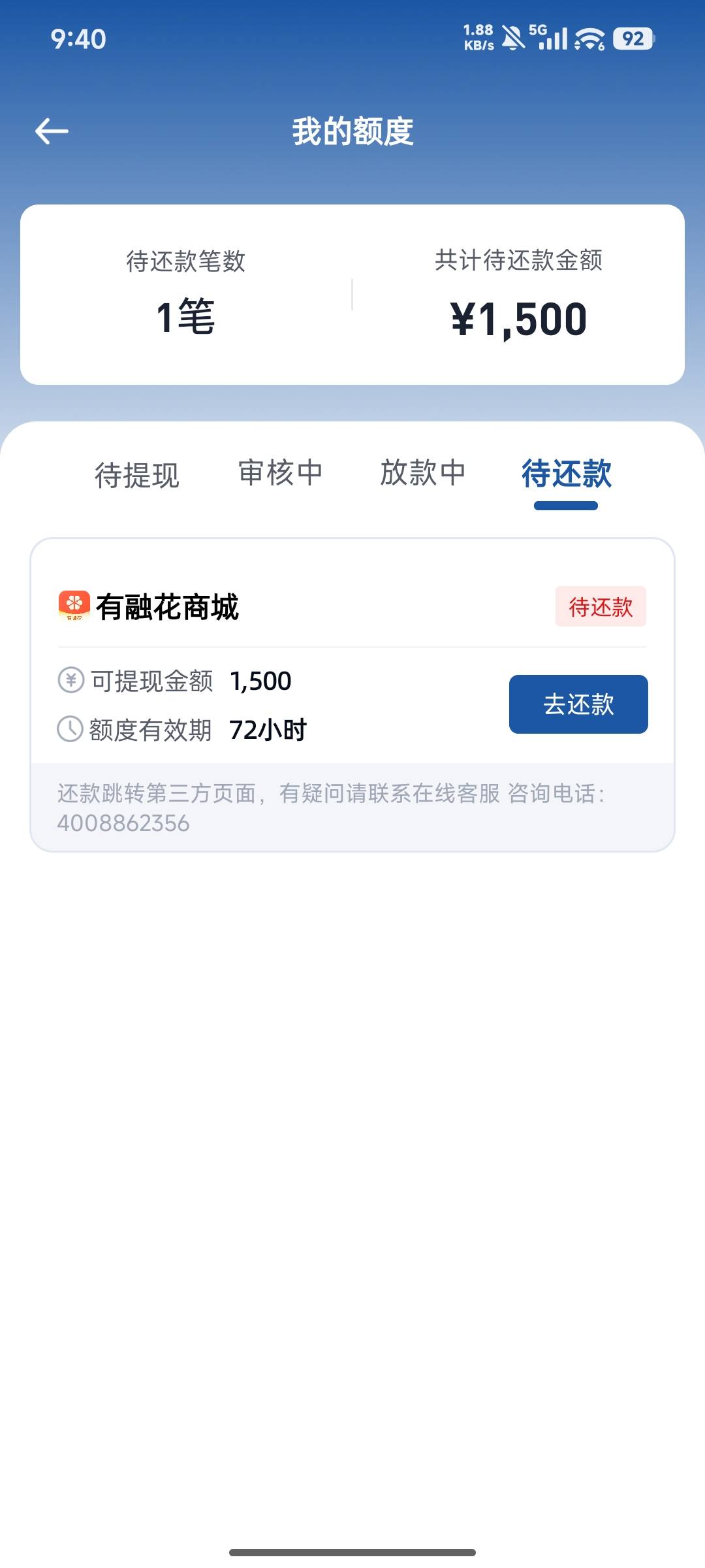 聚融花里面的 有融花过了 ,入口在,直接论坛收聚融花,说智借里面下了两笔那个老哥的帖子  我居然能下,,15天还1530,到zfb红包1150,但我肯定是不还的,最开始9000审核变成1500,,然后还有一个在审核,另一个肯定没戏了