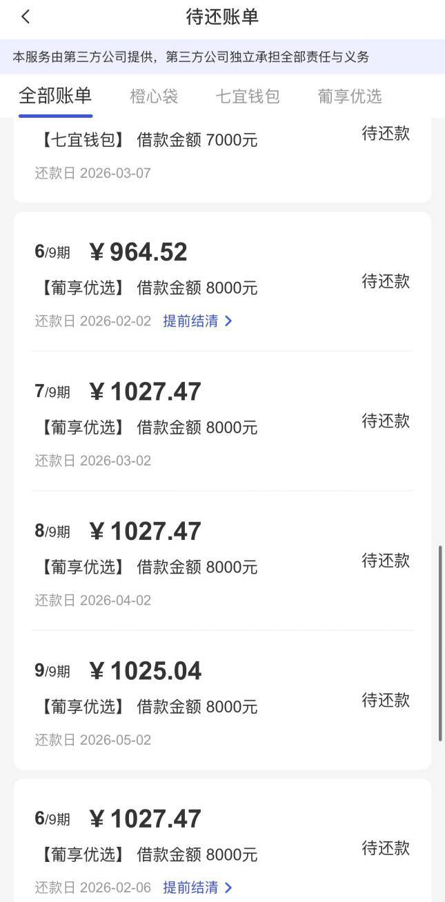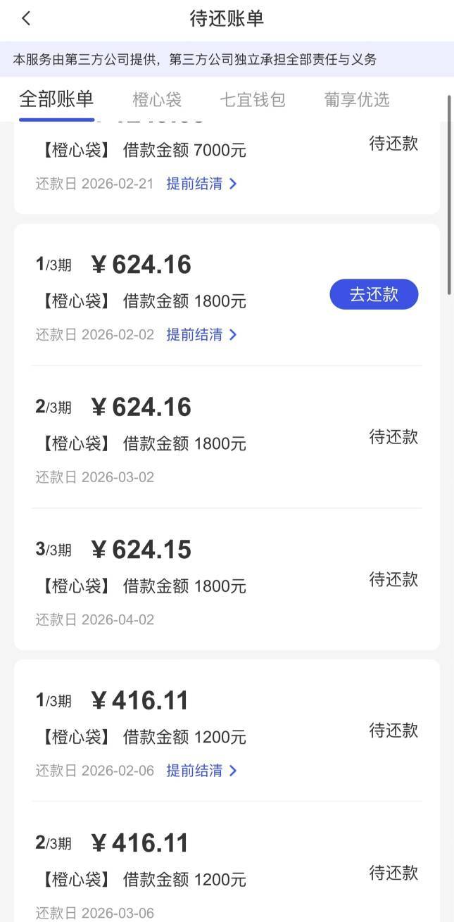 橙心袋下款,30号的时候在橙心贷申请了一笔,今天还款日放了,今天有宜口袋平台的两笔订单需要还款,分别是橙心贷的624.16和葡享卡的1027.47元,共计1651.63元,到账后秒扣,黑龙江农牧建融资担保有限公司通过通联支付的,并且还有多出来一笔62.95的额外扣费。但后来在还款页面看发现订单并没有还款成功,找客服了,但是到现在还没解决,这玩意怎么整,刚才看还款账单还要我还。