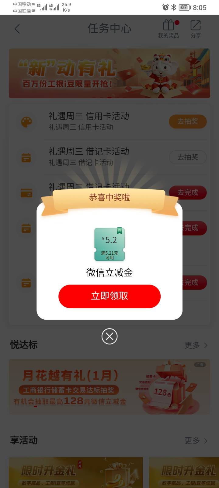 工行贵阳任务中心礼遇周三借记卡活动