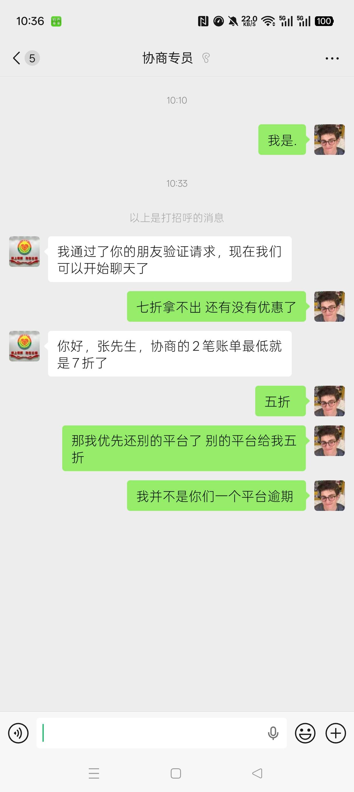 我跟那边说五折 还没回我