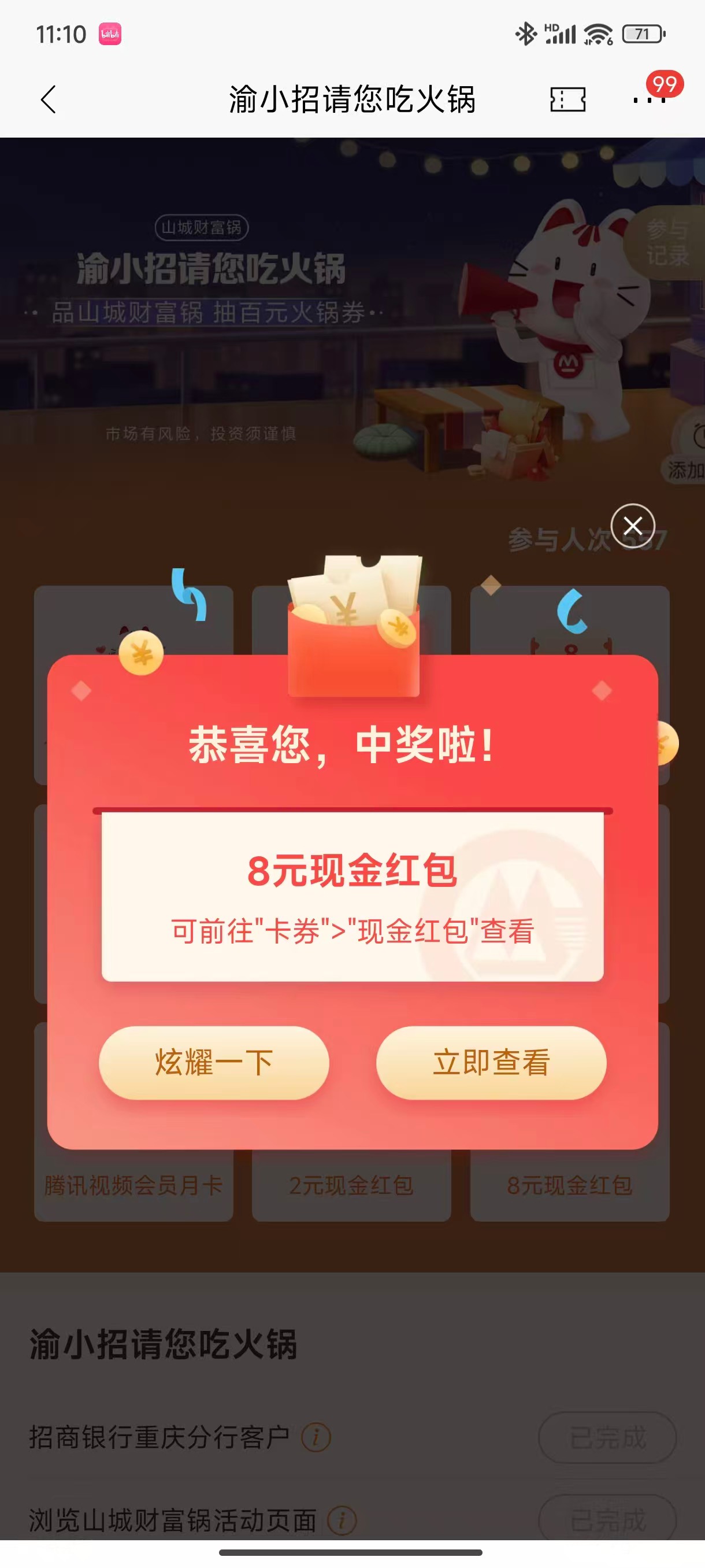 招商银行重庆渝小招请您吃火锅活动