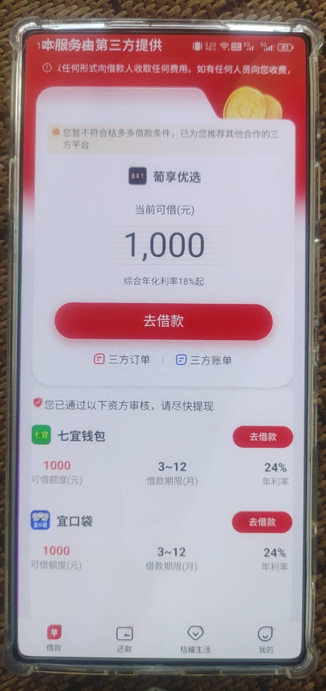 宜口袋没逾期,橙信贷下来两比,今天又出来这个,,宜口袋本体申请就拒,这个在宜口袋本体申请好还是在桔多多里申请好