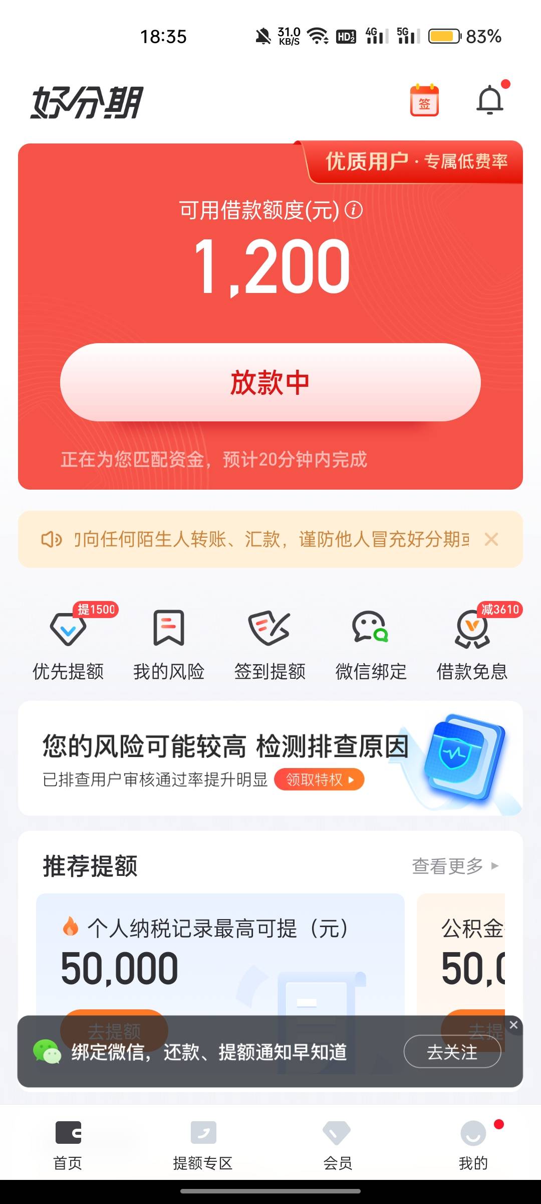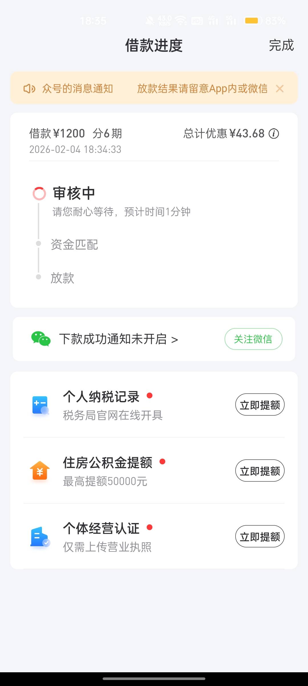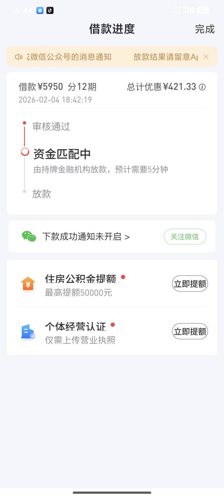 我好想上岸吖 发表于 2026-02-04 18:47 我之前也没额度,今天下午重新认证出来5000额度,刚才提交资料涨了950,现在放款中了