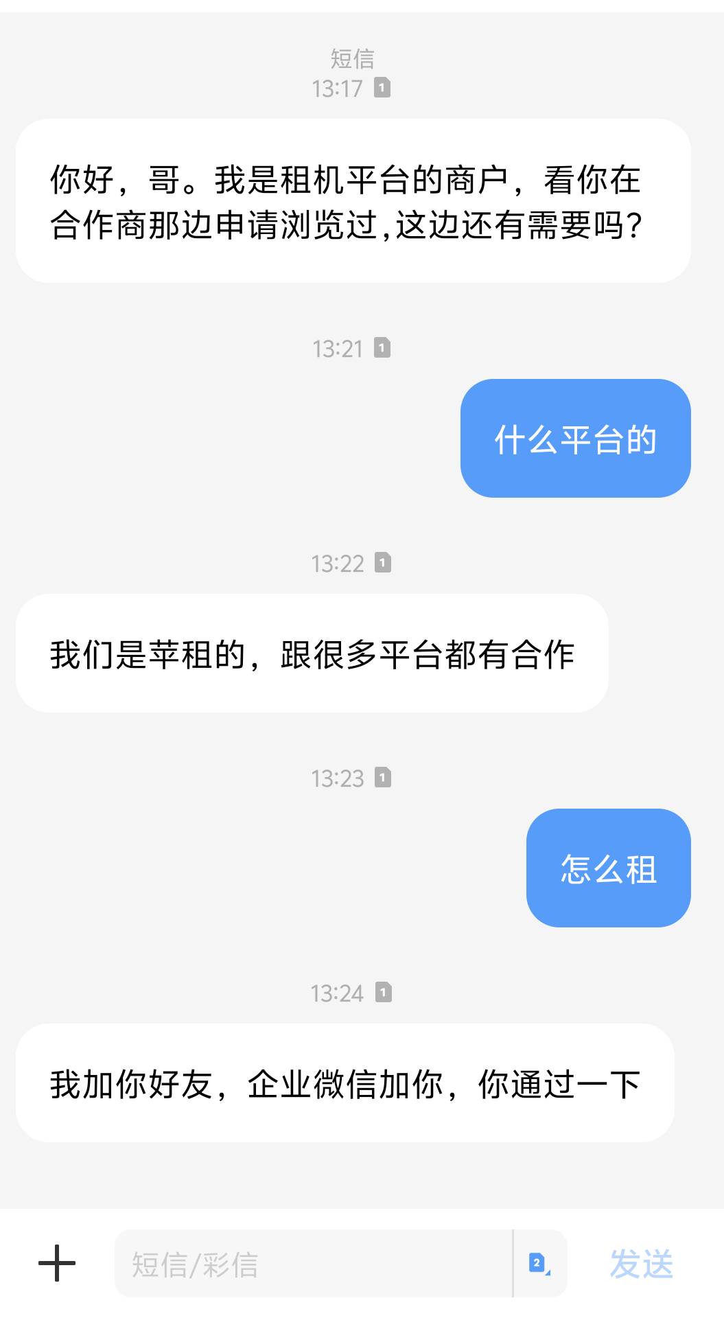 短信收到一条可以租机的短信,靠谱吗?