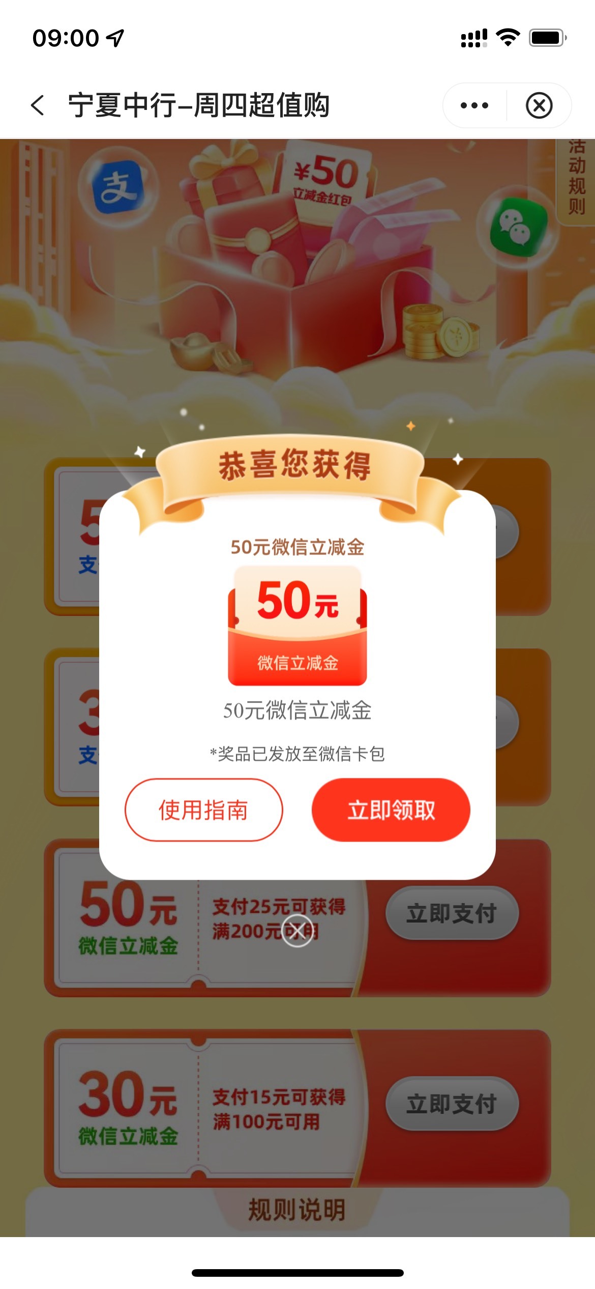 中行宁夏信用卡周四超值购微信立减金活动