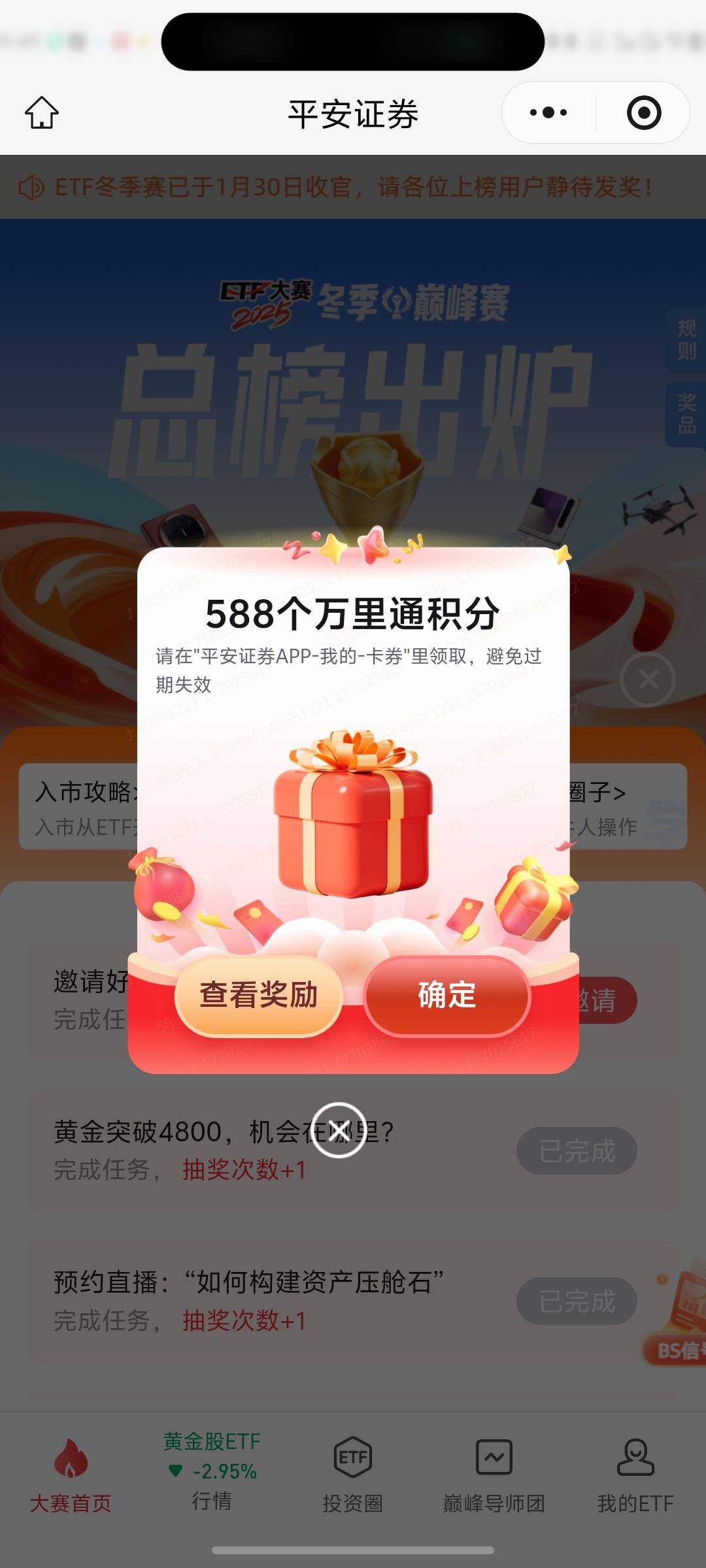 平安证券ETF冬季巅峰赛做任务抽大奖活动