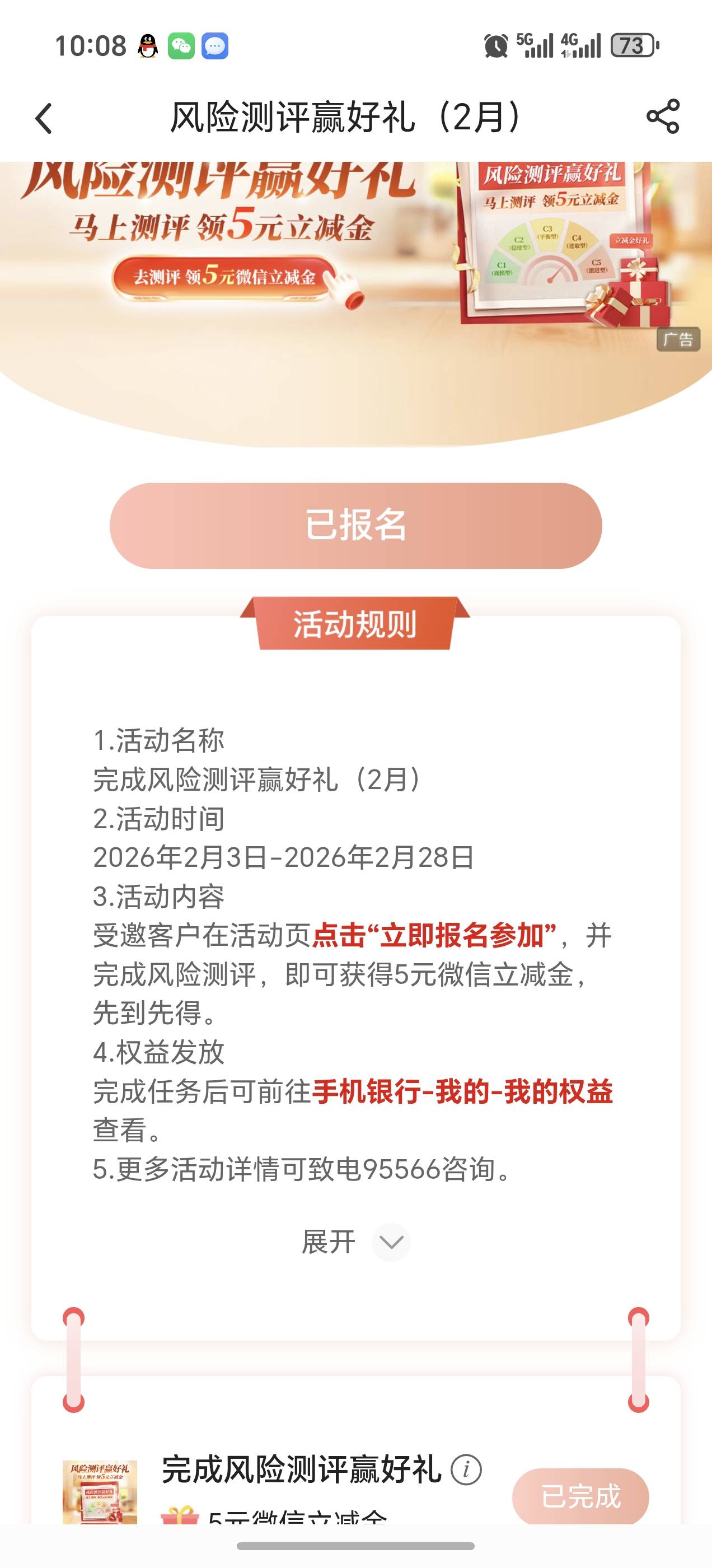中行受邀客户风险评测赢好礼活动