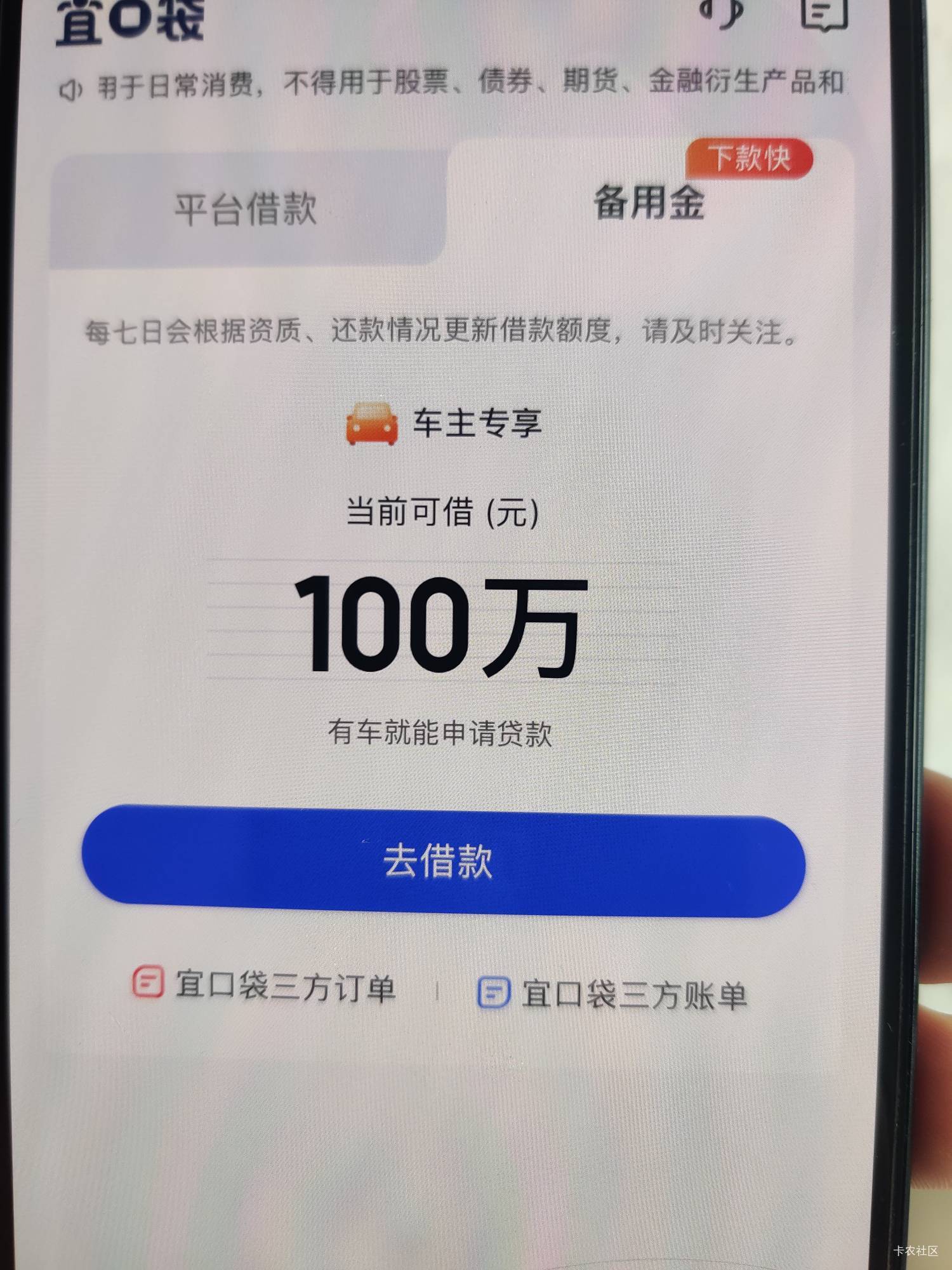 宜口袋备用金第一次出额,两个都秒据,回主页又变百万了,有老铁知道怎么破吗