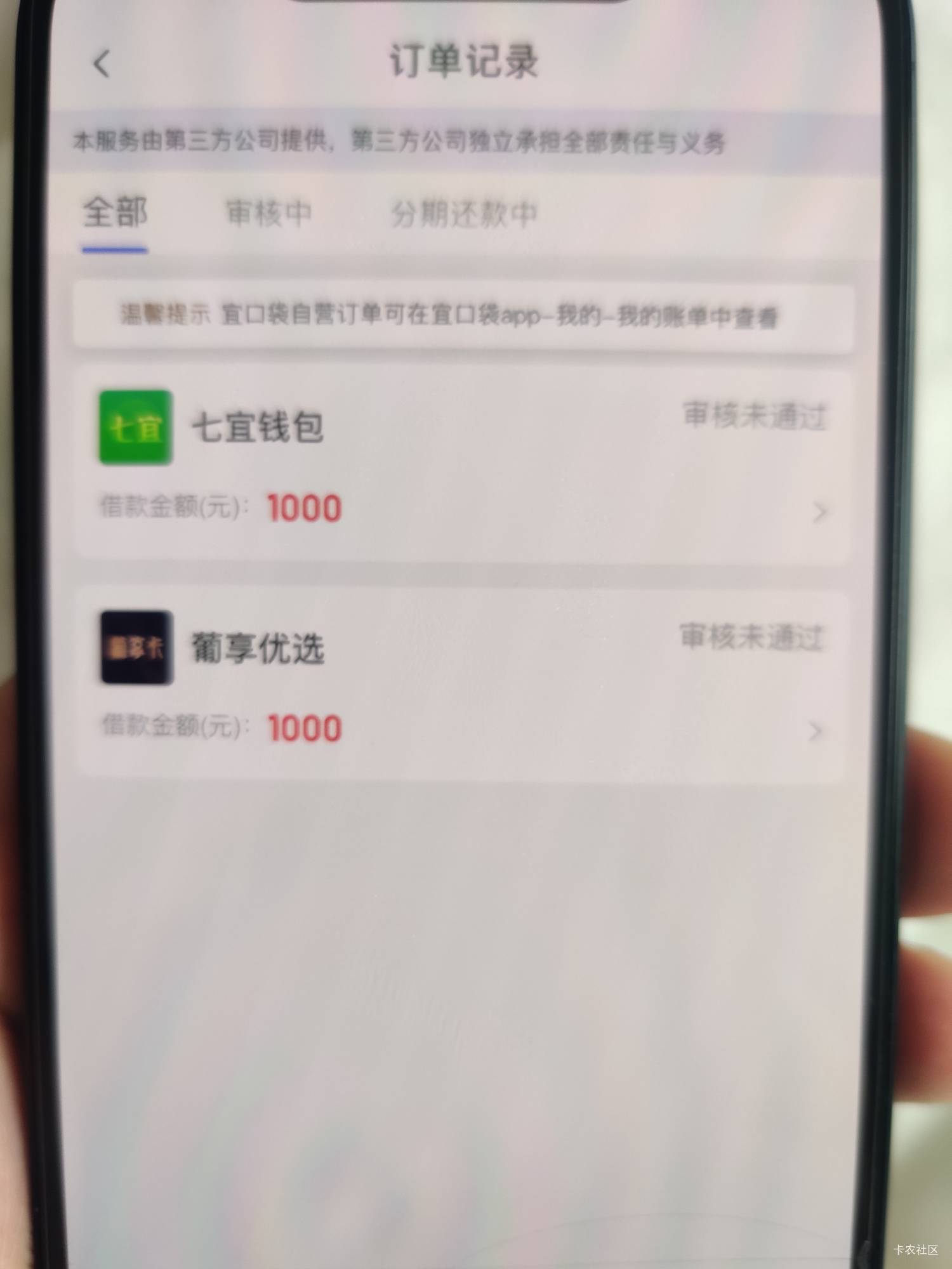 两个5000 两个都放款失败