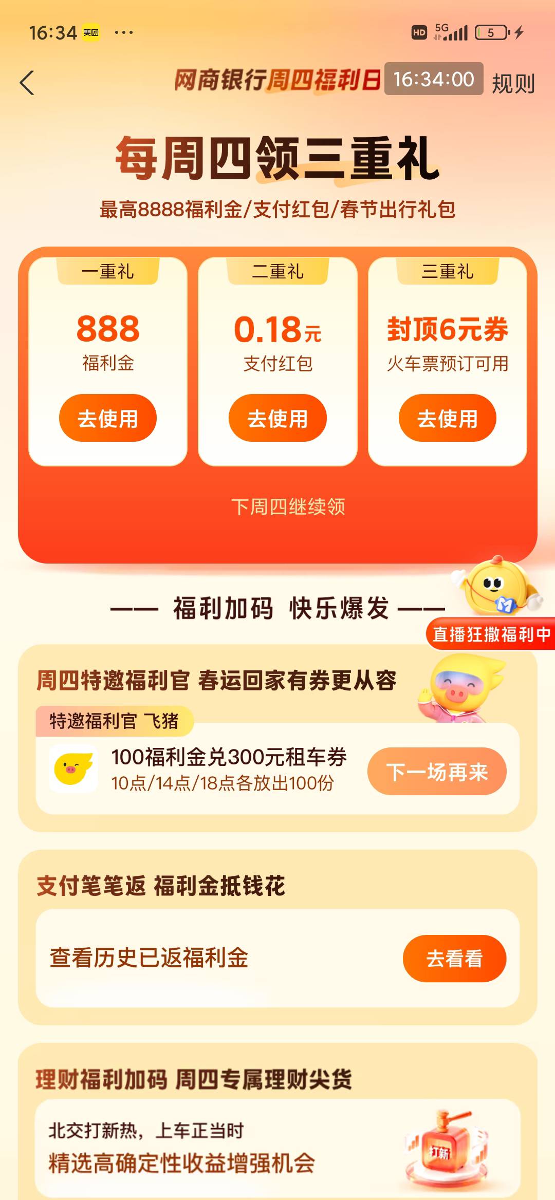 支付宝网商银行周四福利日领三重礼活动